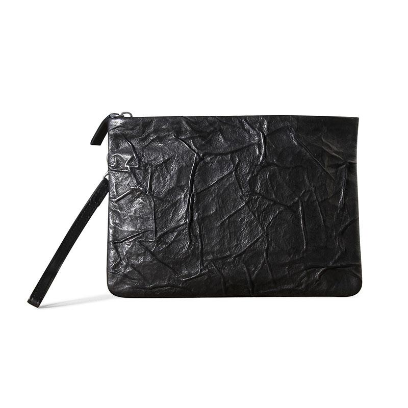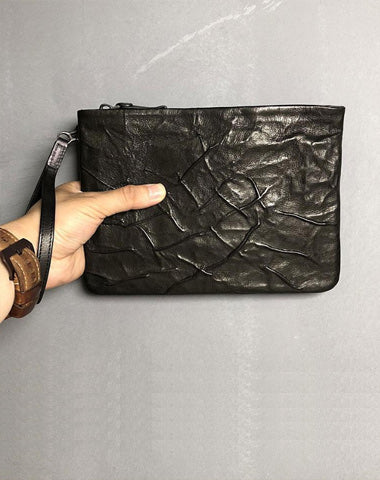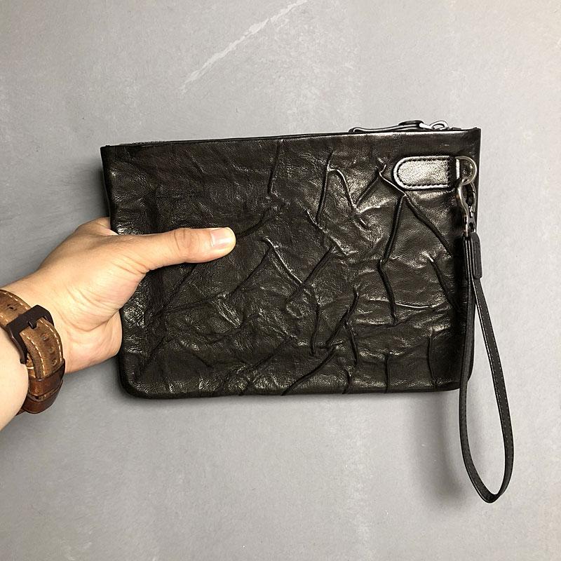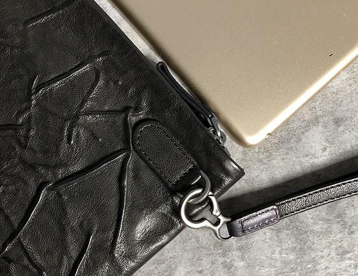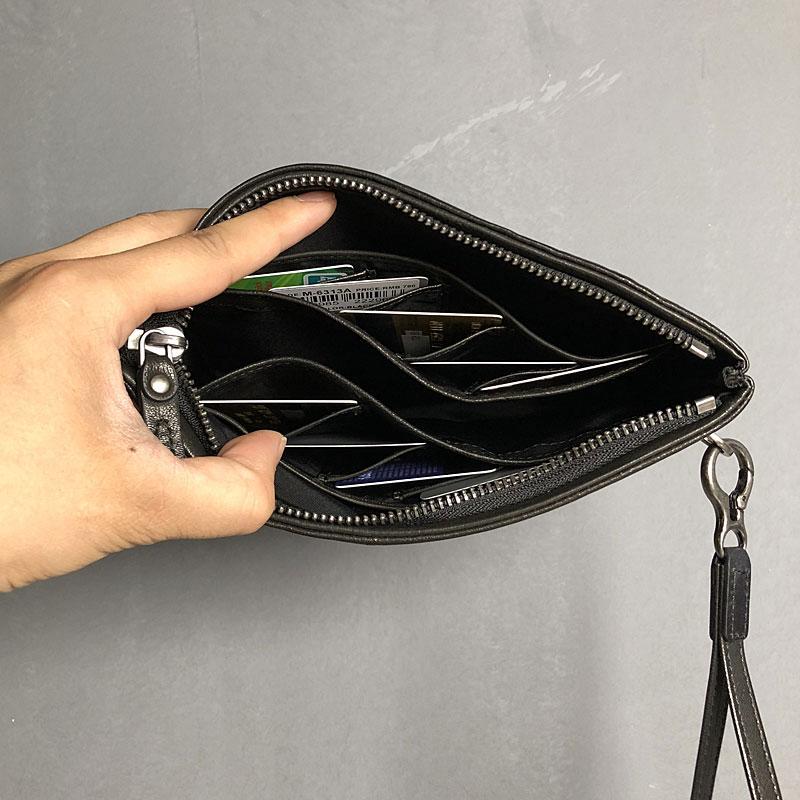 Design: Genuine Leather Mens Clutch Cool Slim Wallet Zipper Clutch Wristlet Wallet for Men