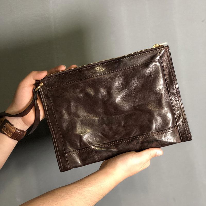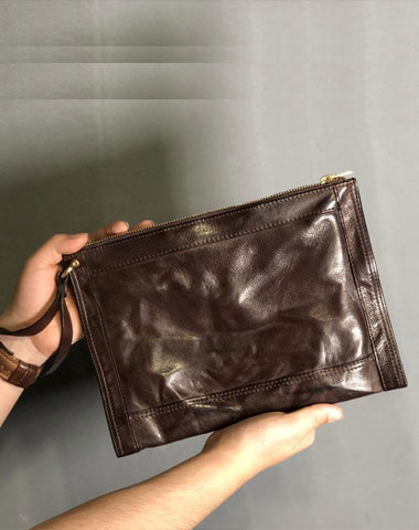 Style: Genuine Leather Braided Mens Clutch Cool Slim Wallet Zipper Clutch Wristlet Wallet for Men