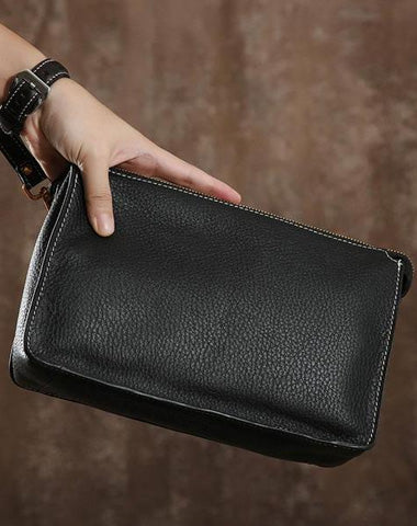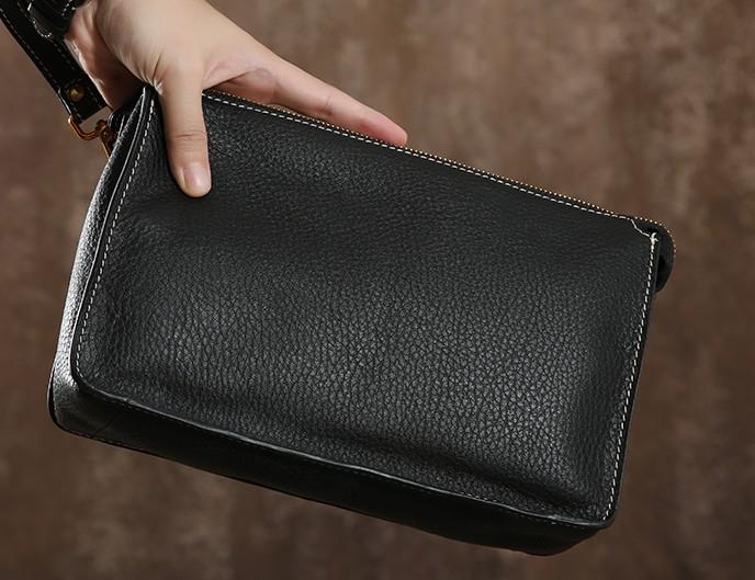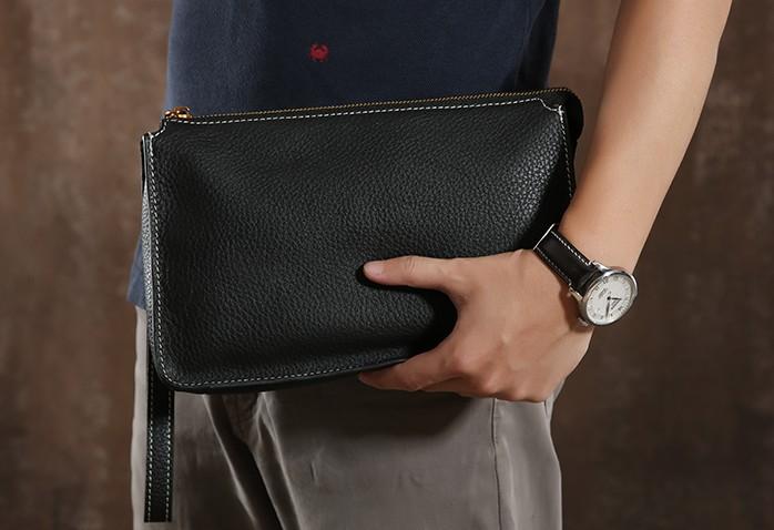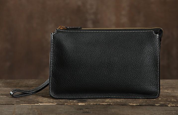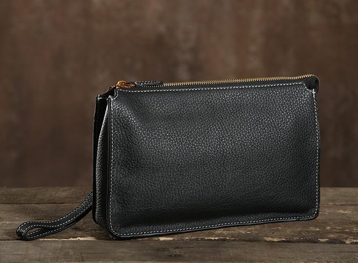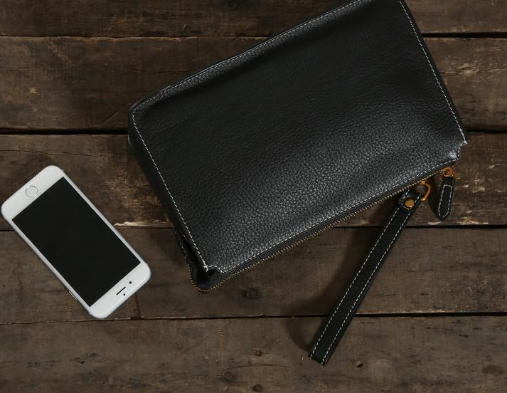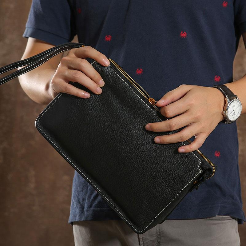 Design: Genuine Leather Mens Clutch Cool Wallet Zipper Clutch Wristlet Bag Wallet for Men
