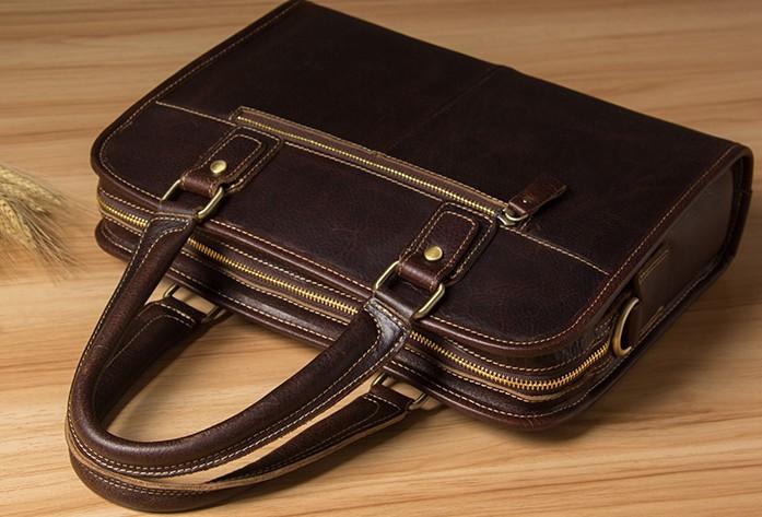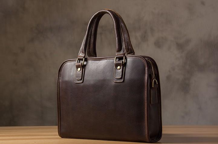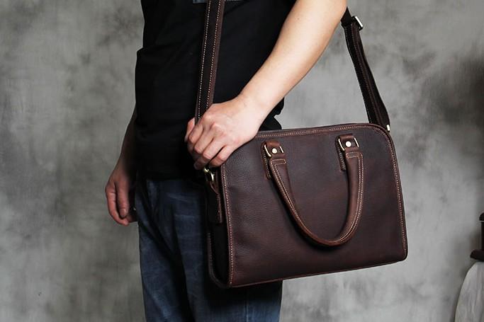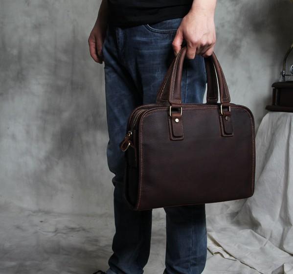 Design: Genuine Leather Mens Coffee Briefcase Shoulder Bag Work Bag Laptop Bag Business Bag for Men