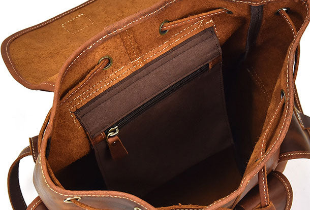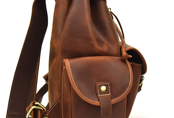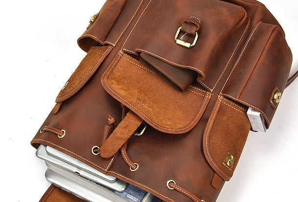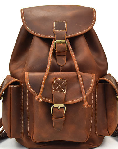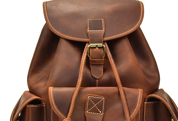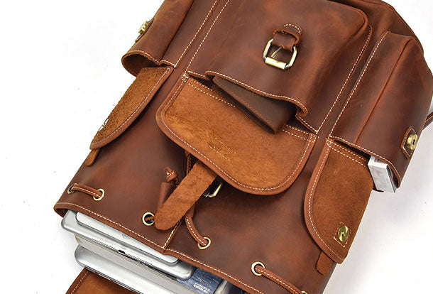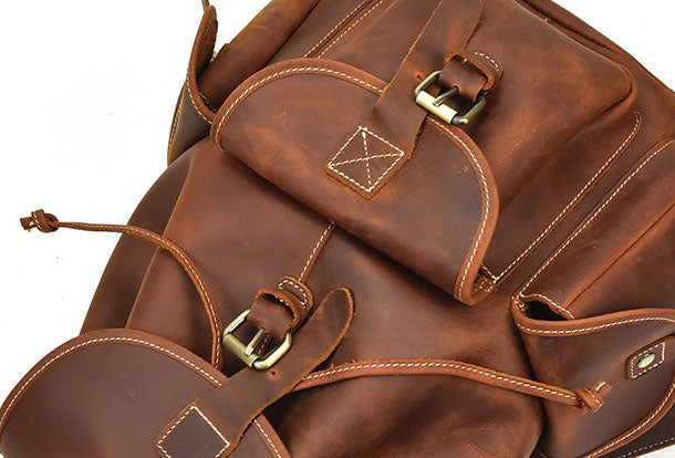 Design: Genuine Leather Mens Cool Backpack Sling Bag Large Brown Travel Bag Hiking Bag For Men