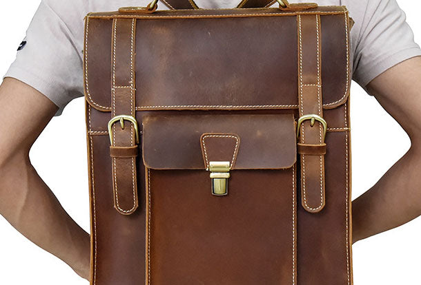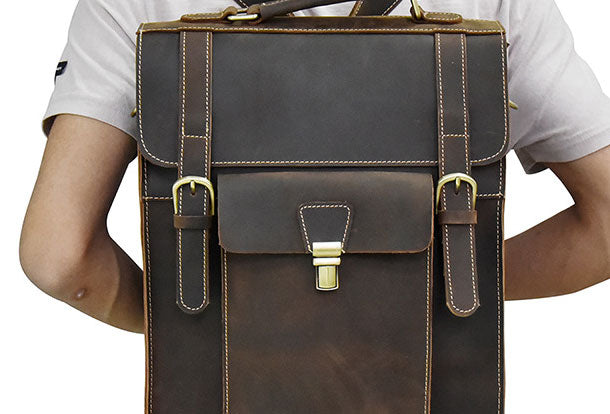 Design: Genuine Leather Mens Cool Backpack Sling Bag Large Black Travel Bag Hiking Bag For Men?