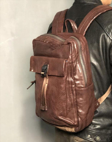 Style: Genuine Leather Mens Cool Backpack Sling Bag Large Black Travel Bag Hiking Bag for men