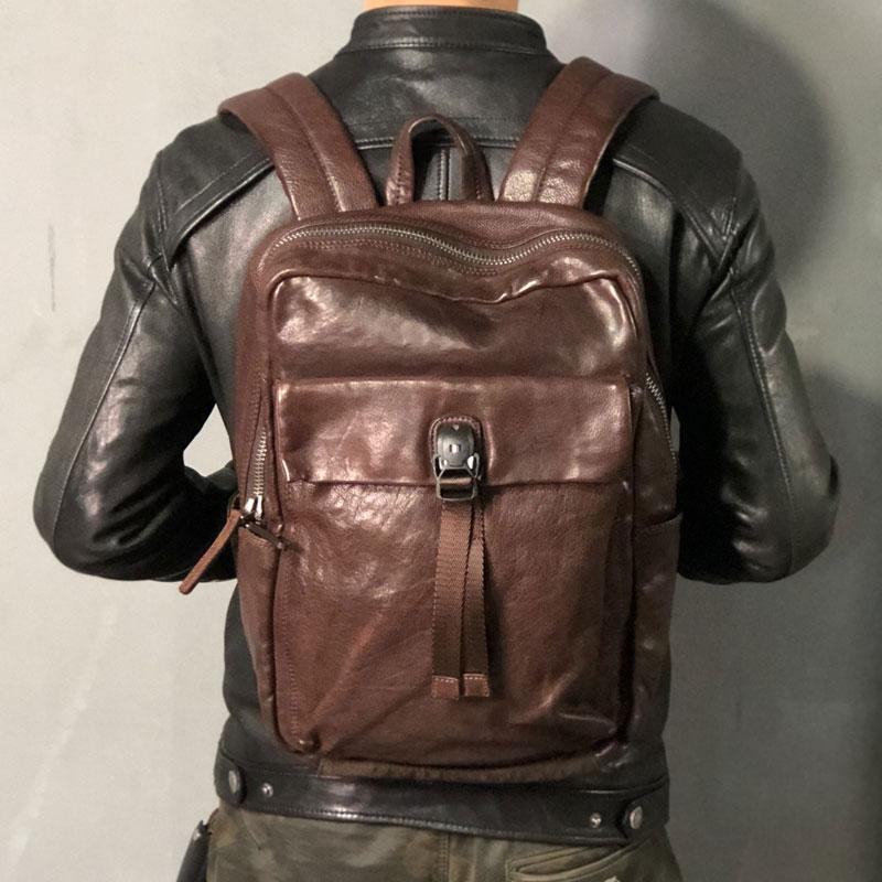 Design: Genuine Leather Mens Cool Backpack Sling Bag Large Black Travel Bag Hiking Bag for men