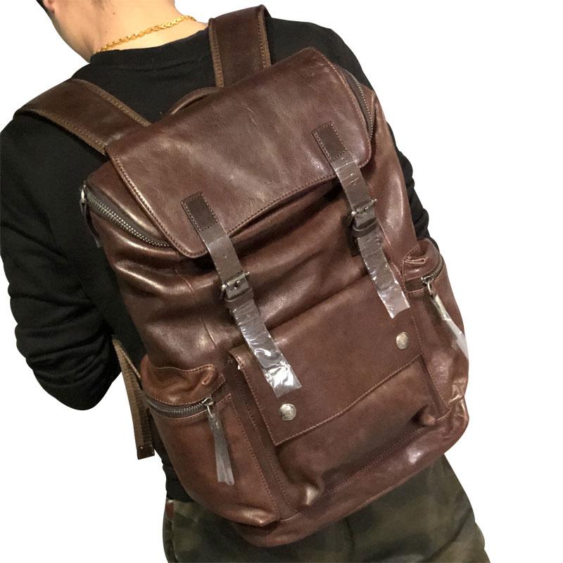 Design: Genuine Leather Mens Cool Backpack Sling Bag Large Black Travel Bag Hiking Bag for men