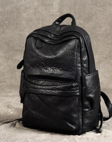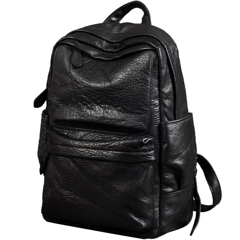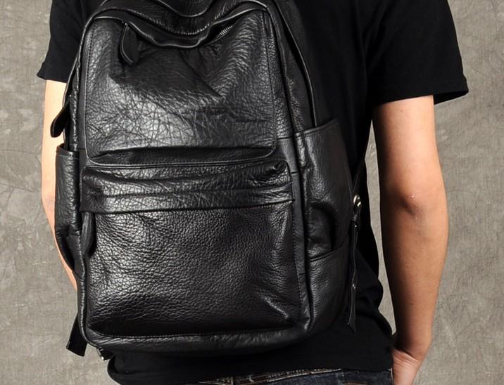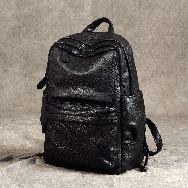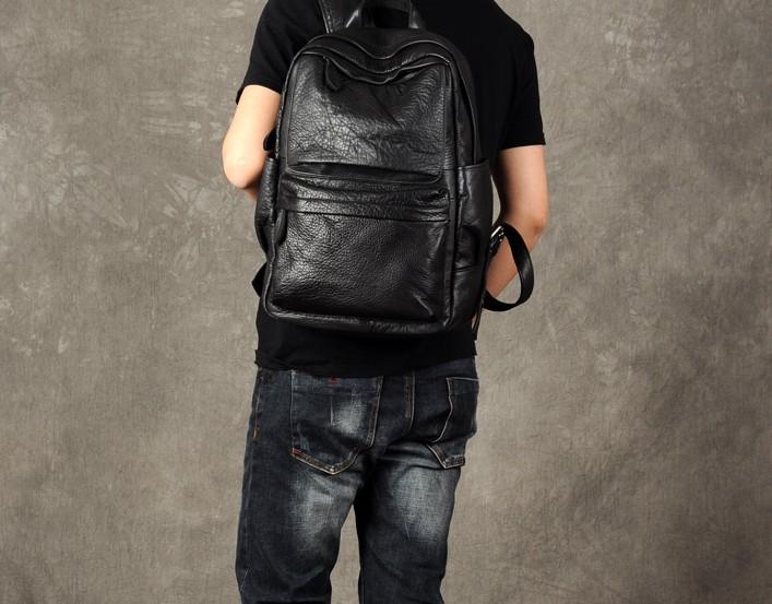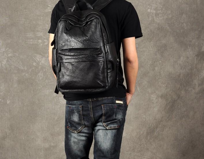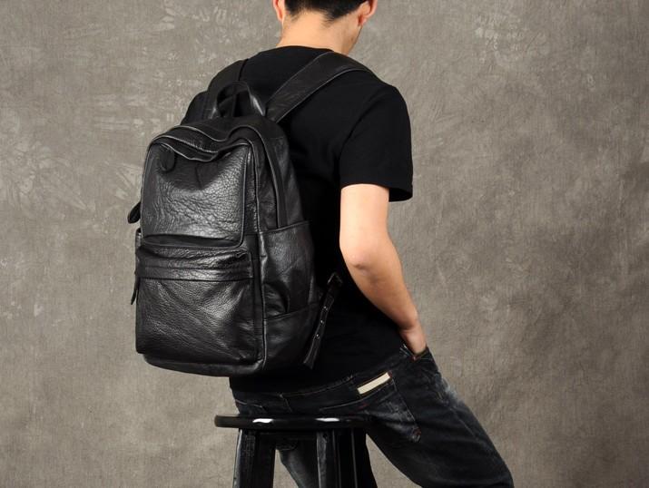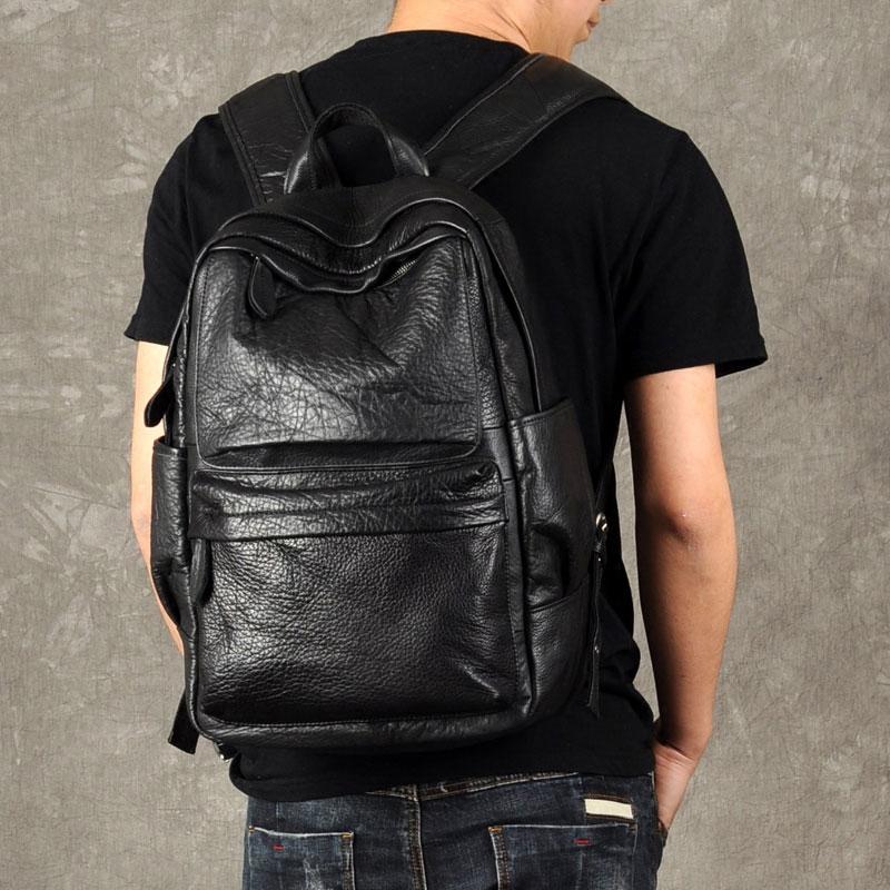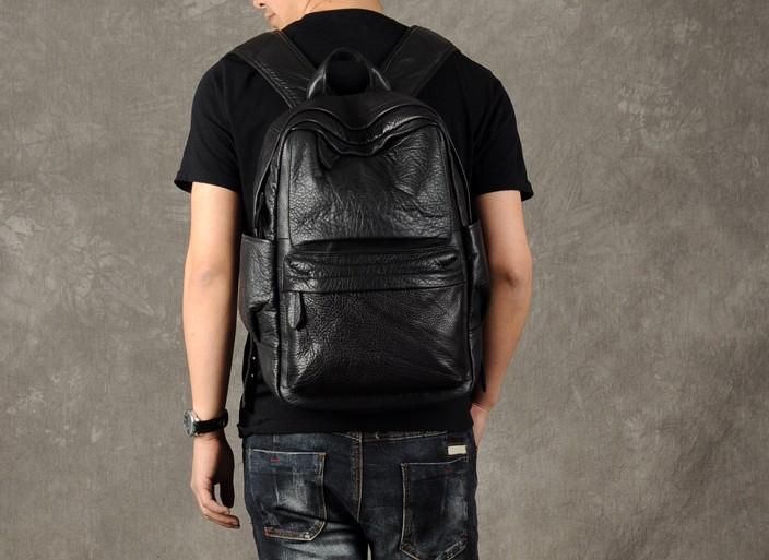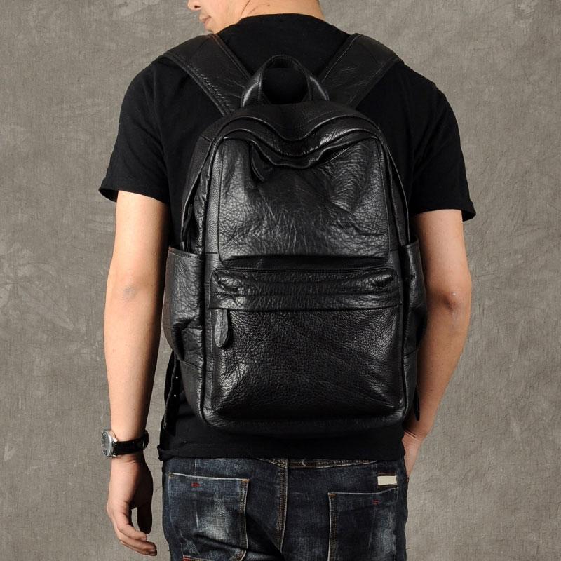 Style: Genuine Leather Mens Cool Backpack Sling Bag Large Black Travel Bag Hiking Bag for men
