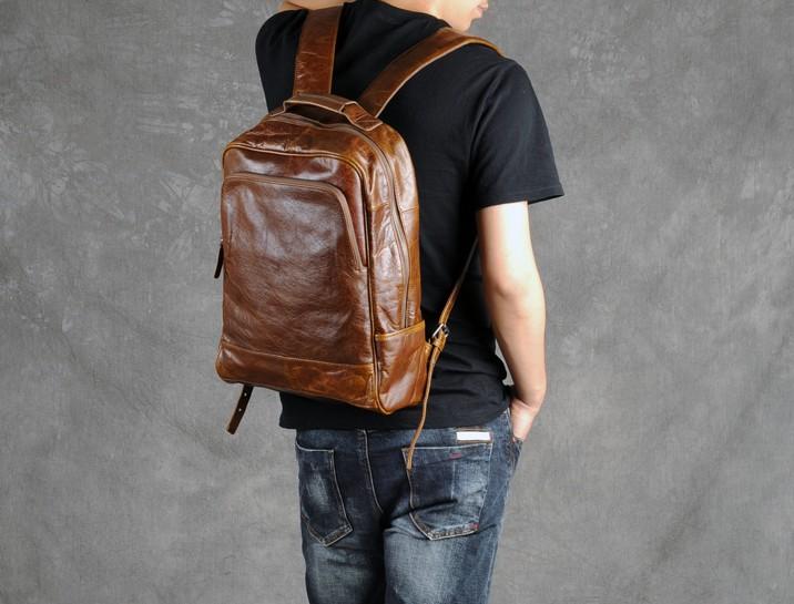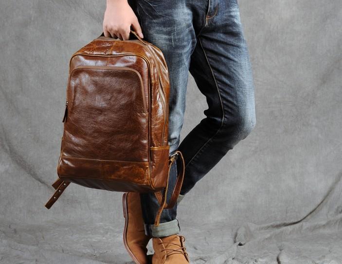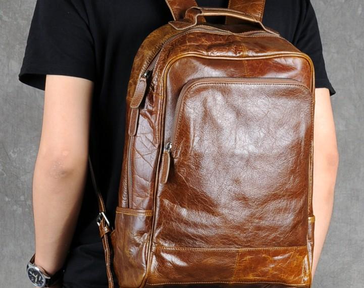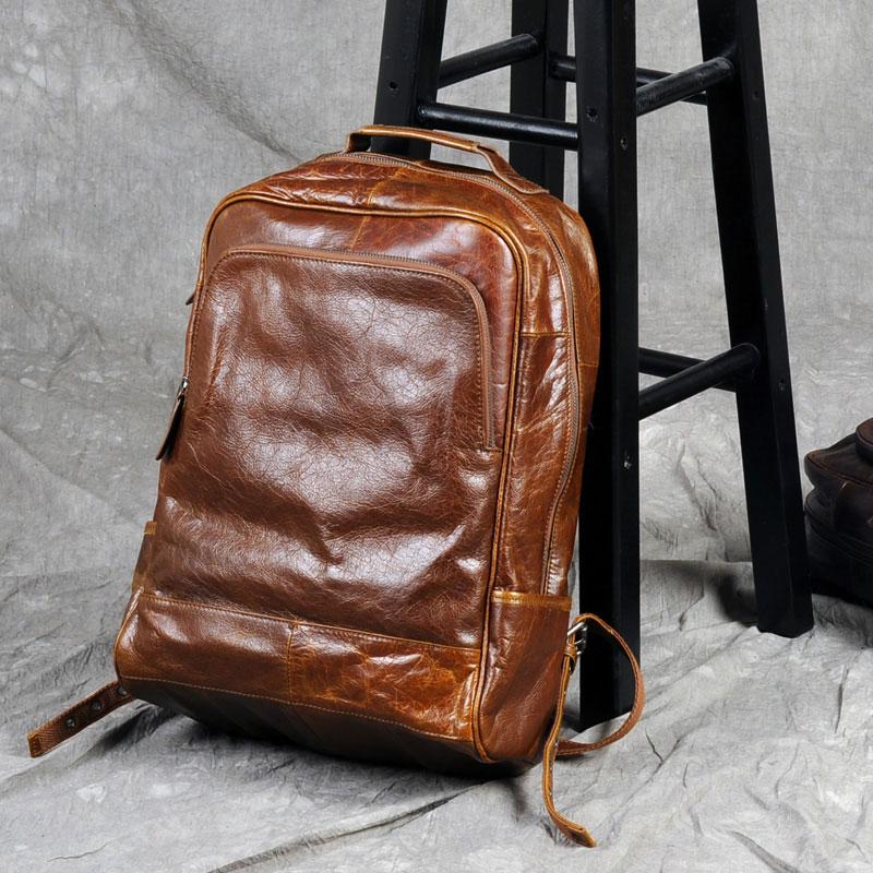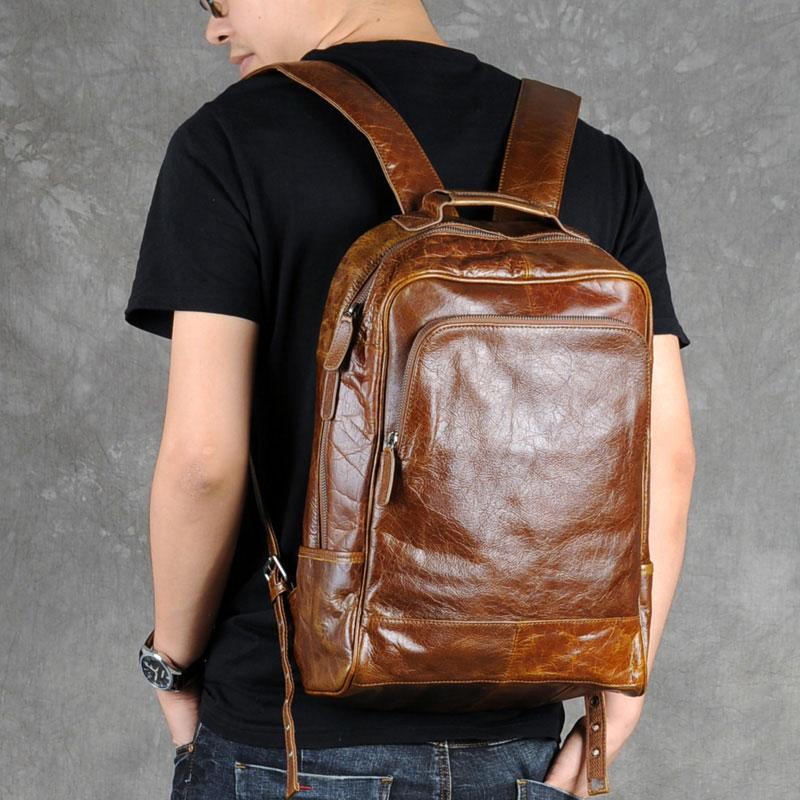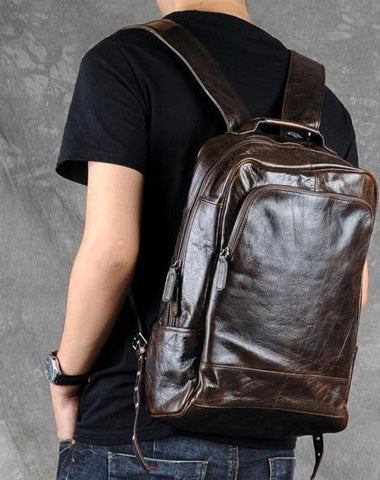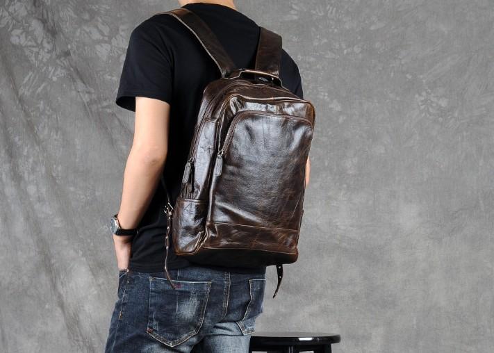 Style: Genuine Leather Mens Cool Backpack Sling Bag Large Black Travel Bag Hiking Bag for men