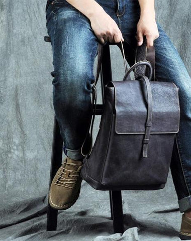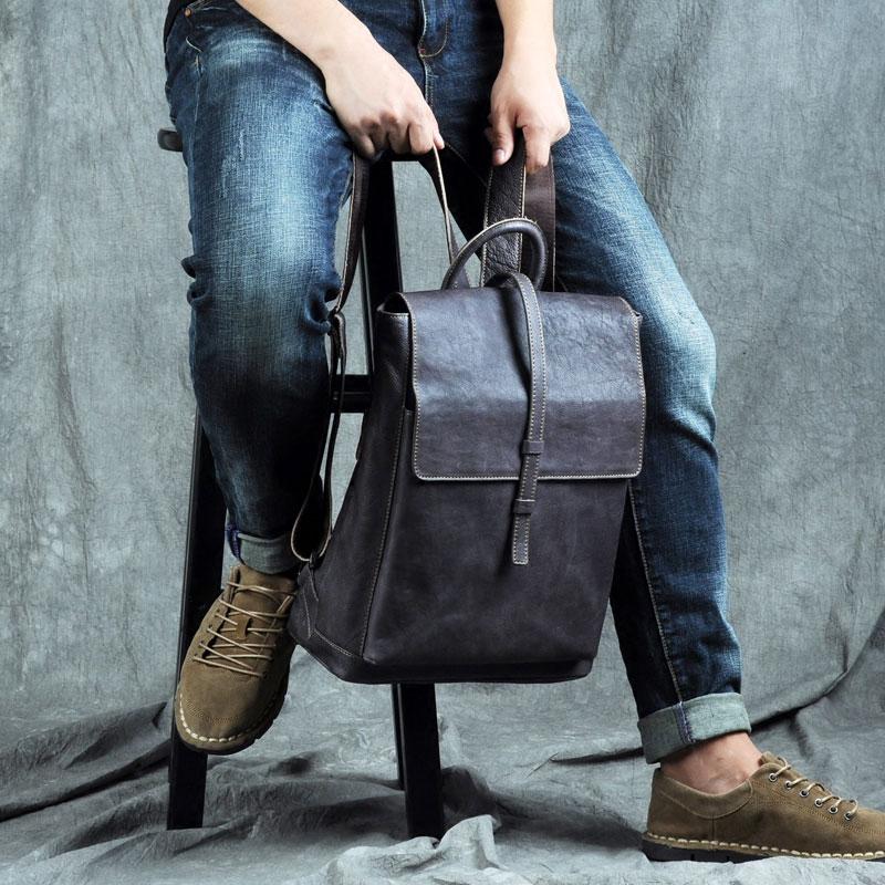 Design: Genuine Leather Mens Cool Backpack Sling Bag Large Black Travel Bag Hiking Bag for men