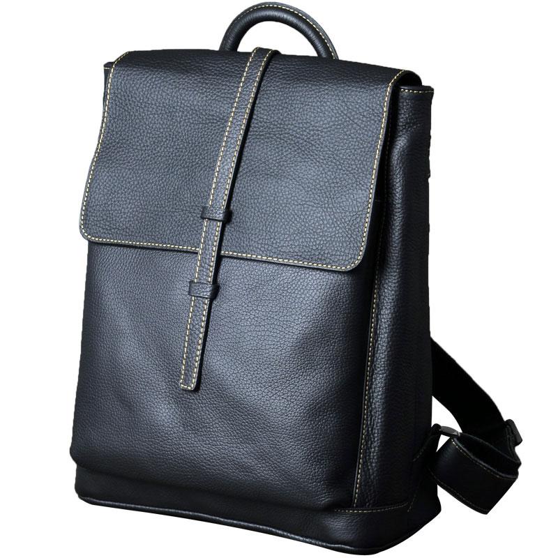 Style: Genuine Leather Mens Cool Backpack Sling Bag Large Black Travel Bag Hiking Bag for men