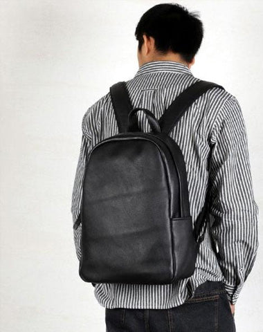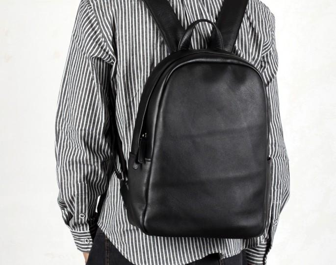 Style: Genuine Leather Mens Cool Backpack Sling Bag Large Black Travel Bag Hiking Bag for men