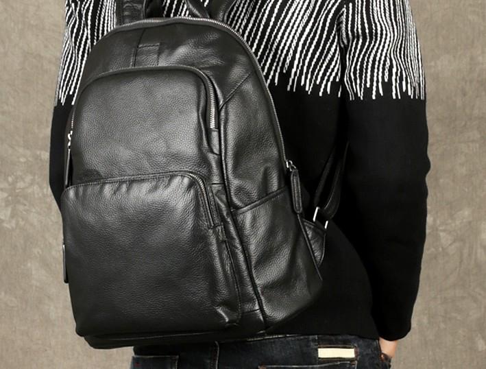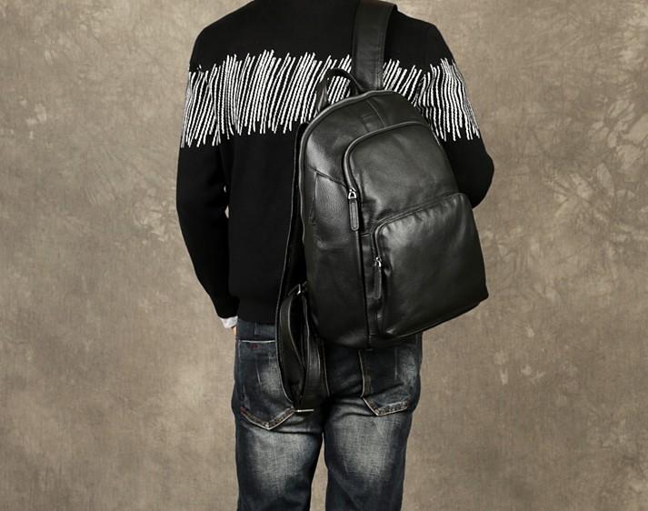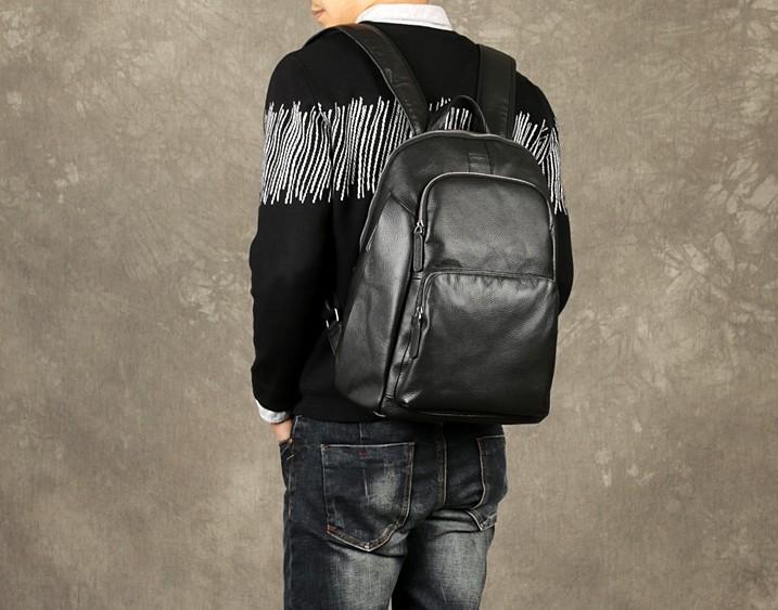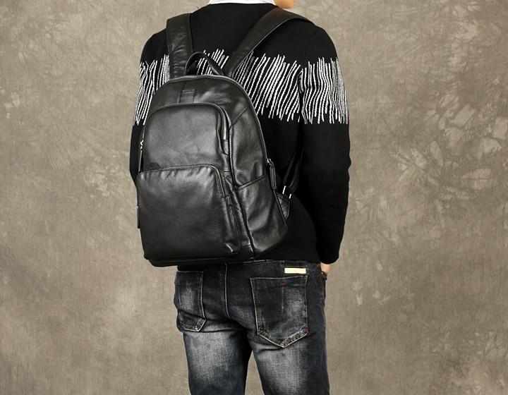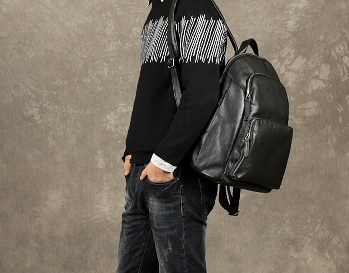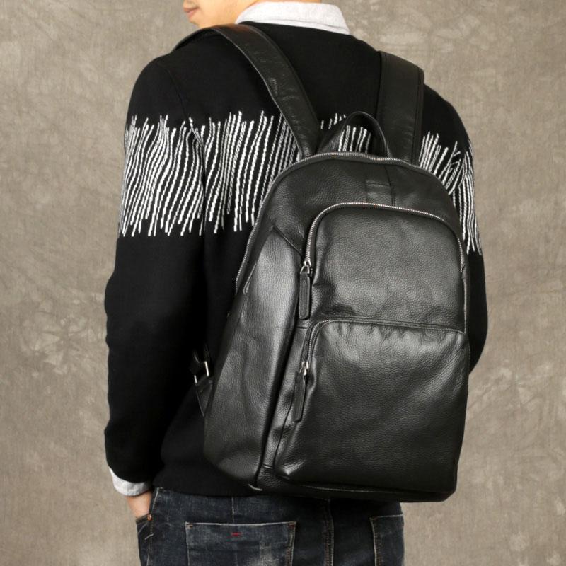 Style: Genuine Leather Mens Cool Backpack Sling Bag Large Black Travel Bag Hiking Bag for men