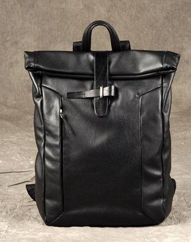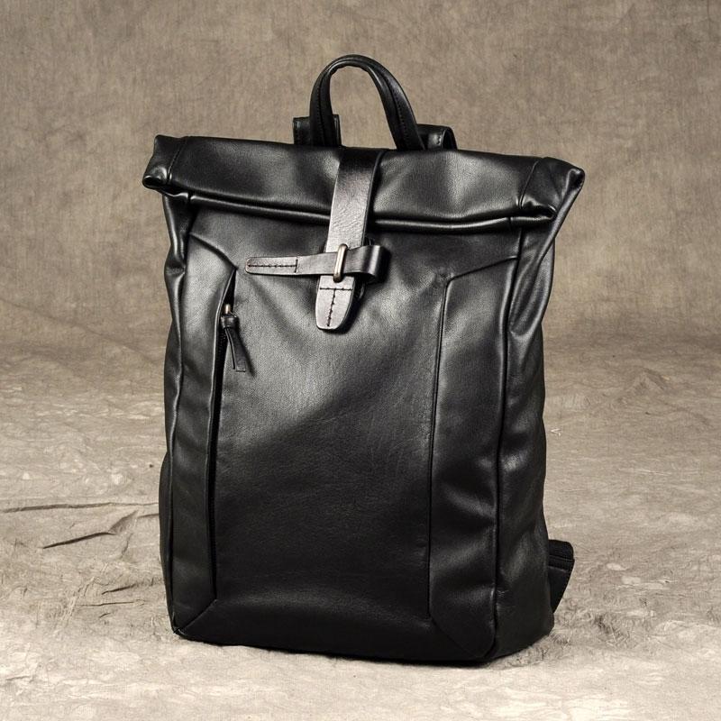 Design: Genuine Leather Mens Cool Backpack Sling Bag Large Black Travel Bag Hiking Bag for men