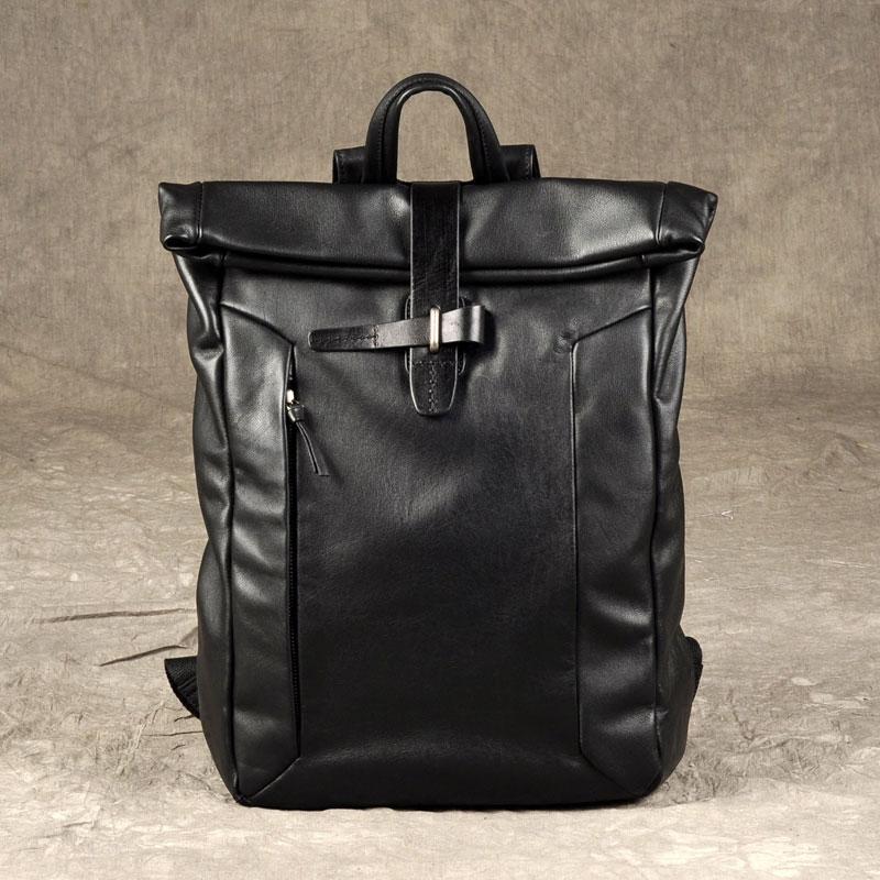Style: Genuine Leather Mens Cool Backpack Sling Bag Large Black Travel Bag Hiking Bag for men