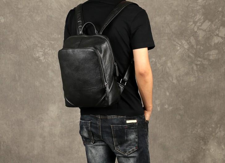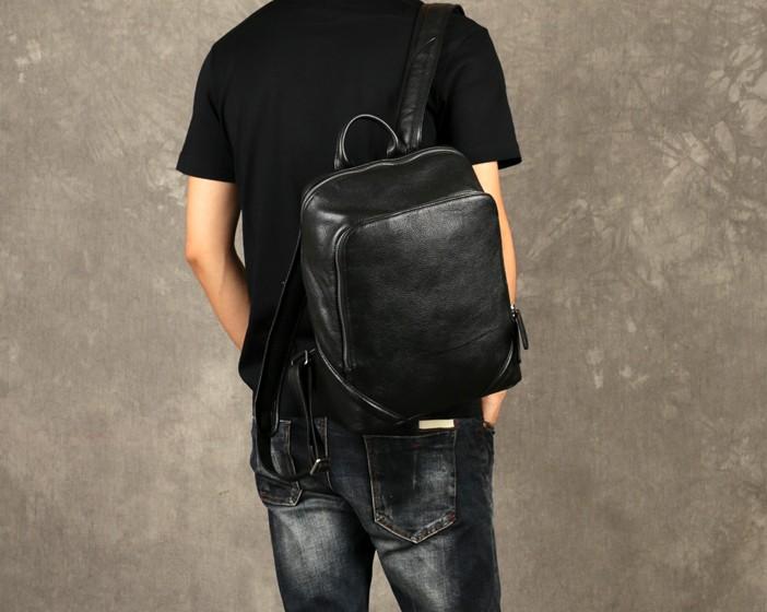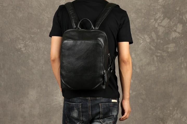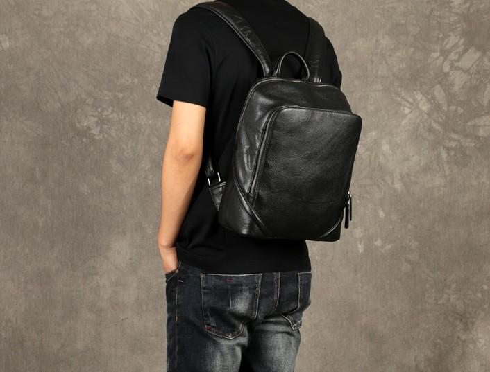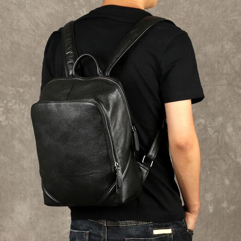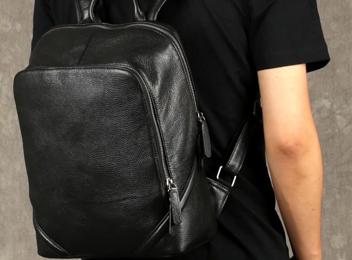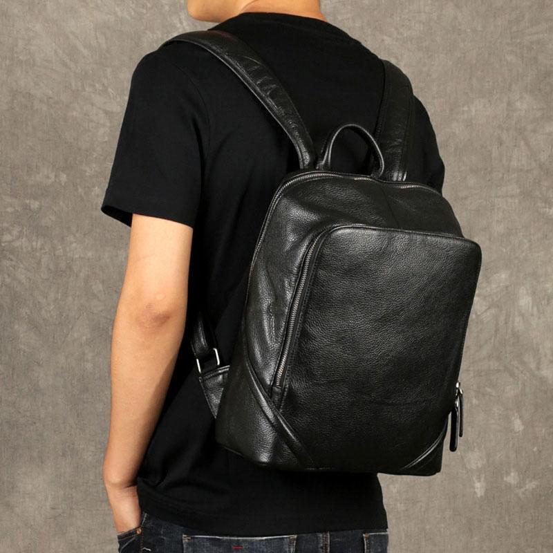 Style: Genuine Leather Mens Cool Backpack Sling Bag Large Black Travel Bag Hiking Bag for men