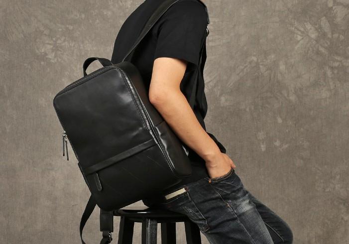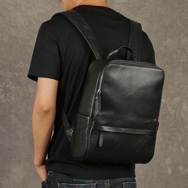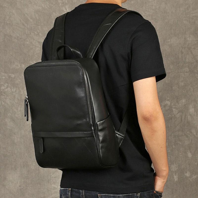 Style: Genuine Leather Mens Cool Backpack Sling Bag Large Black Travel Bag Hiking Bag for men