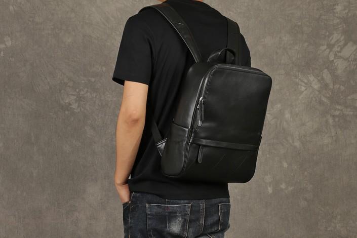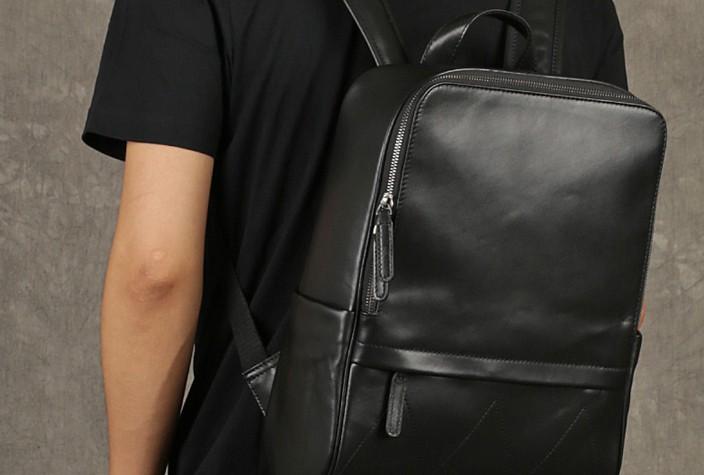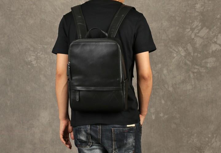 Design: Genuine Leather Mens Cool Backpack Sling Bag Large Black Travel Bag Hiking Bag for men
