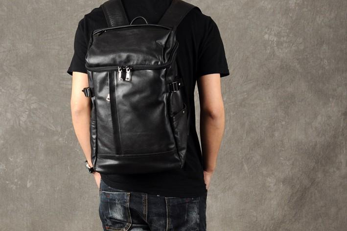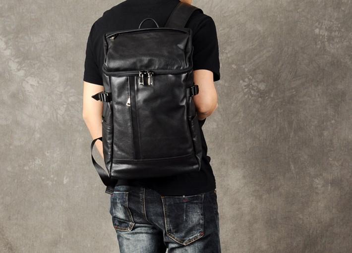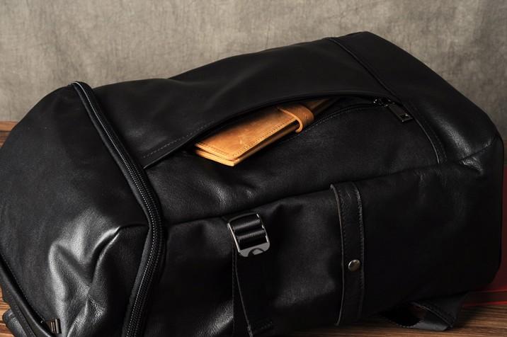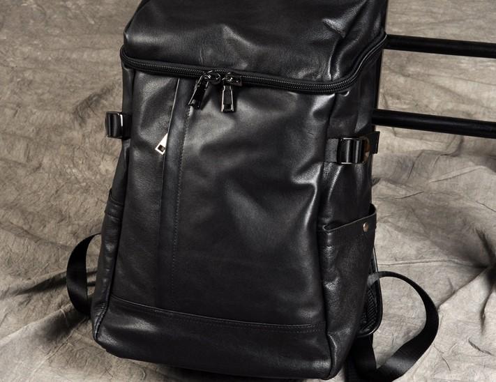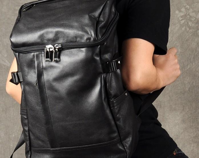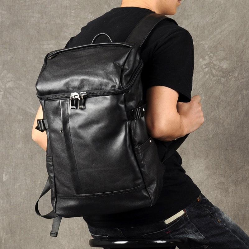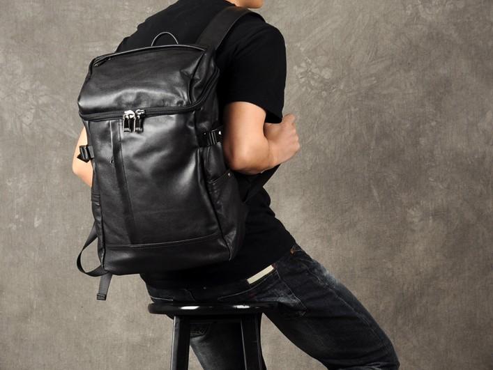 Style: Genuine Leather Mens Cool Backpack Sling Bag Large Black Travel Bag Hiking Bag for men