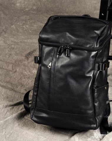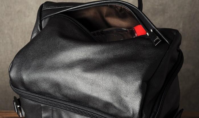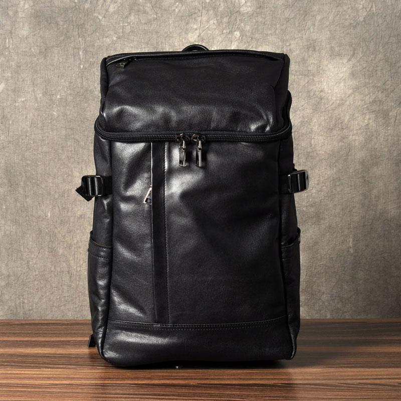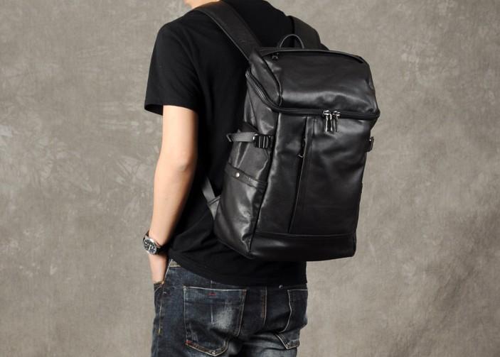 Design: Genuine Leather Mens Cool Backpack Sling Bag Large Black Travel Bag Hiking Bag for men