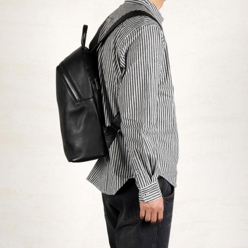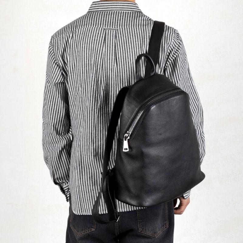 Style: Genuine Leather Mens Cool Backpack Sling Bag Large Black Travel Bag Hiking Bag for men