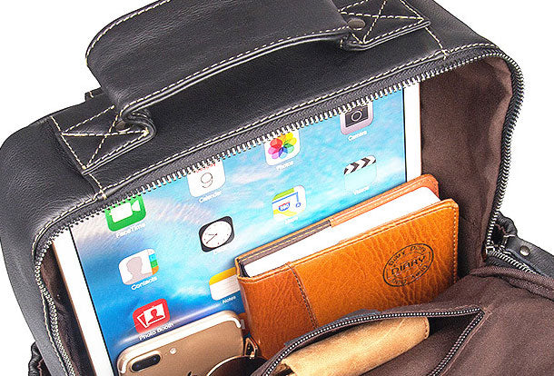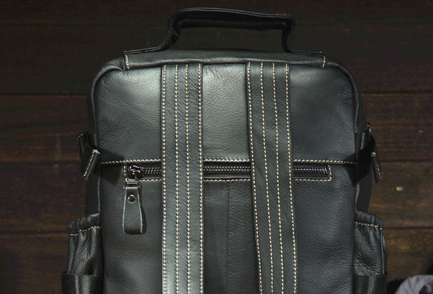 Design: Genuine Leather Mens Cool Backpack Sling Bag Large Black Travel Bag Hiking Bag For Men?
