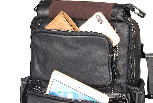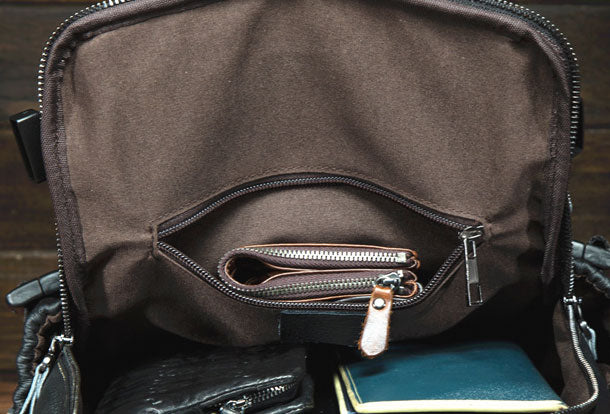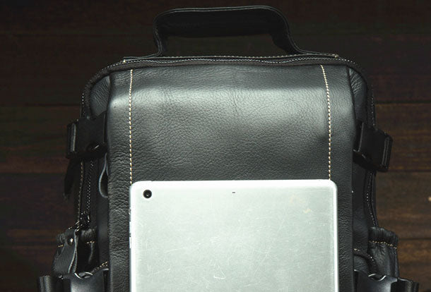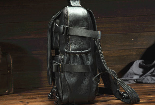 Design: Genuine Leather Mens Cool Backpack Sling Bag Large Black Travel Bag Hiking Bag For MenOverview£º