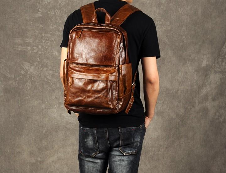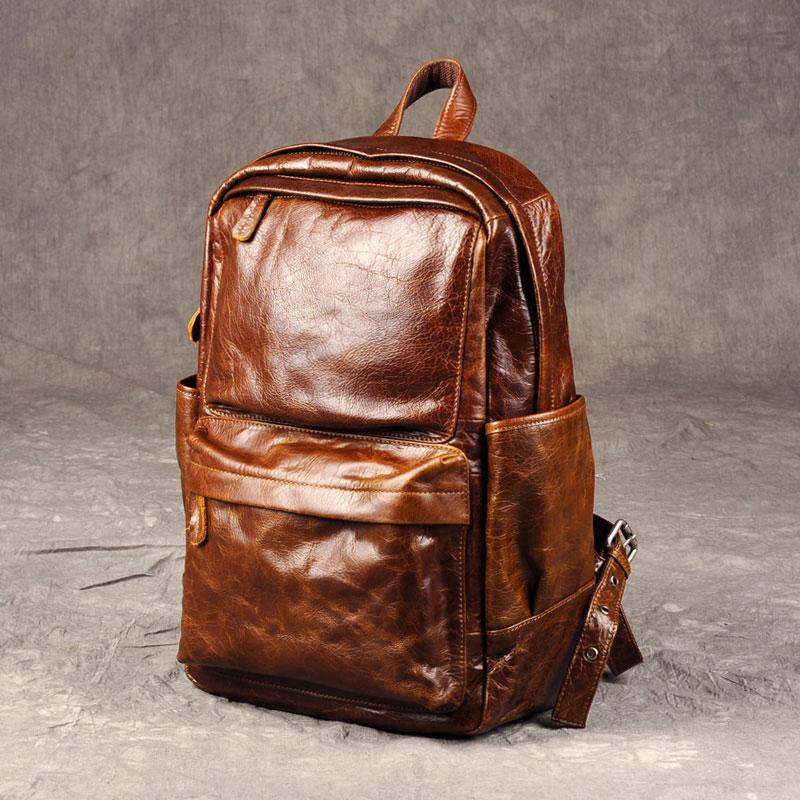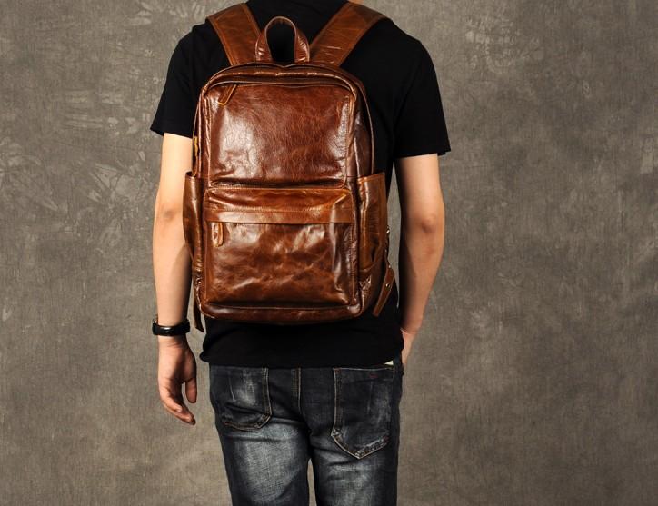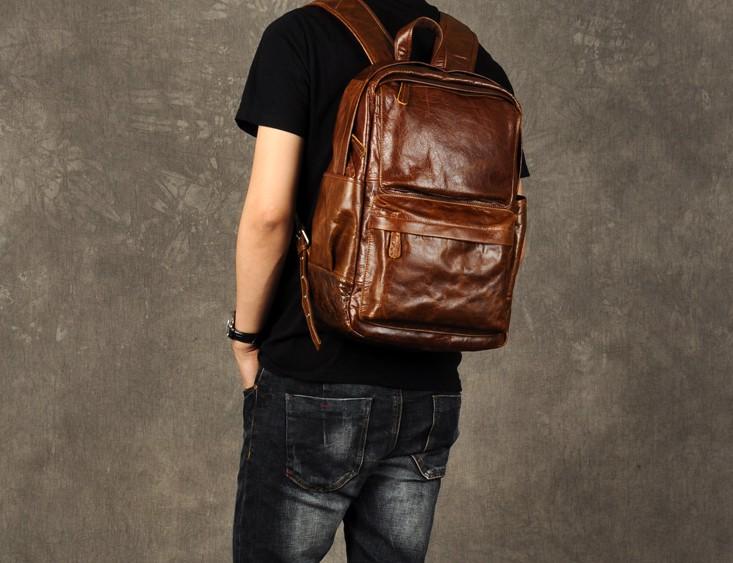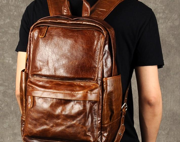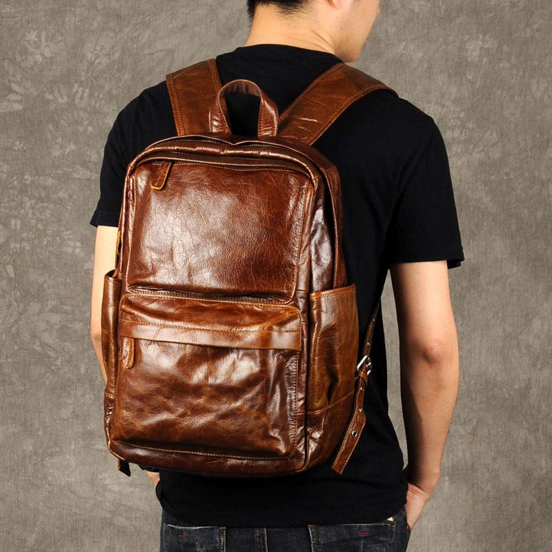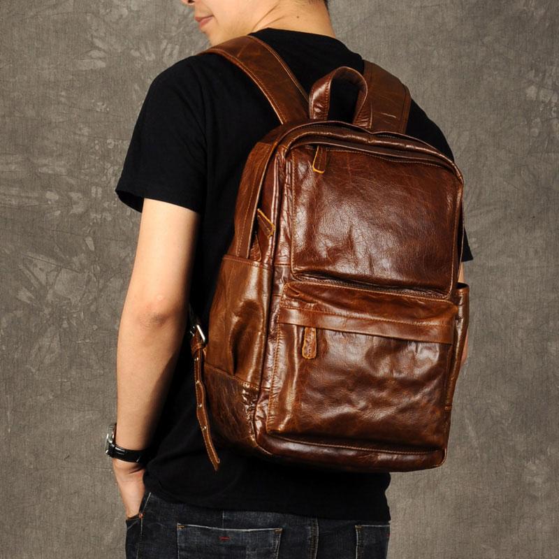 Style: Genuine Leather Mens Cool Backpack Sling Bag Large Black Travel Bag Hiking Bag for men