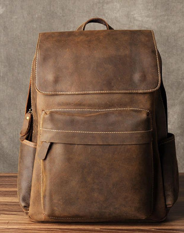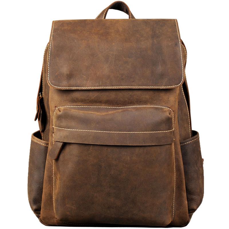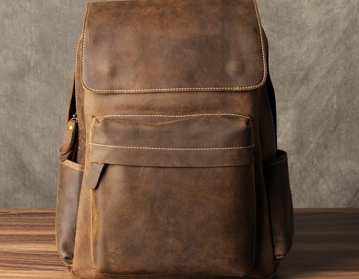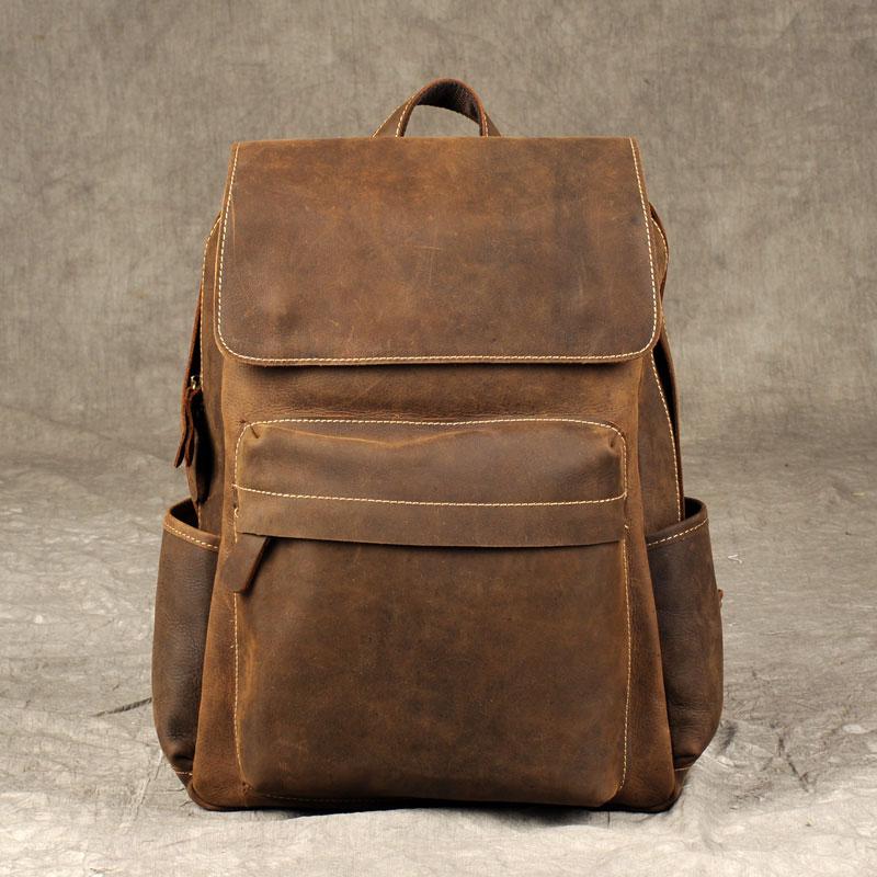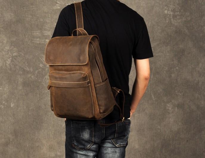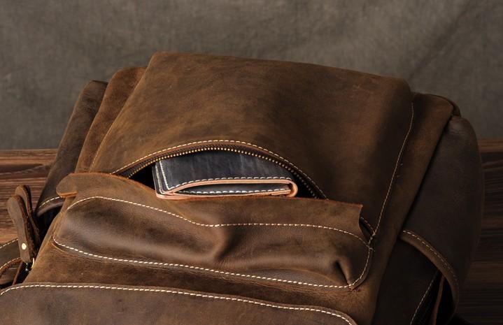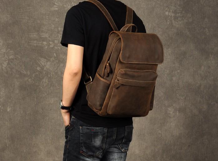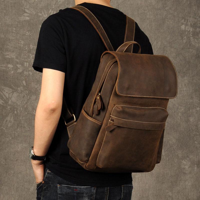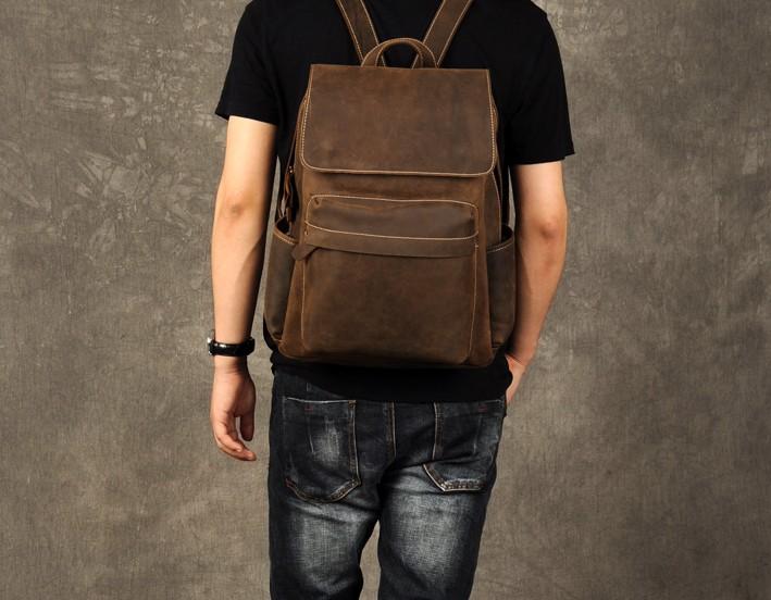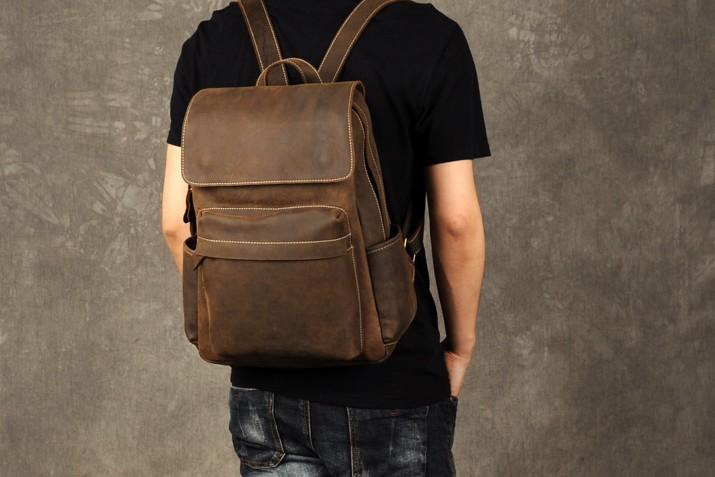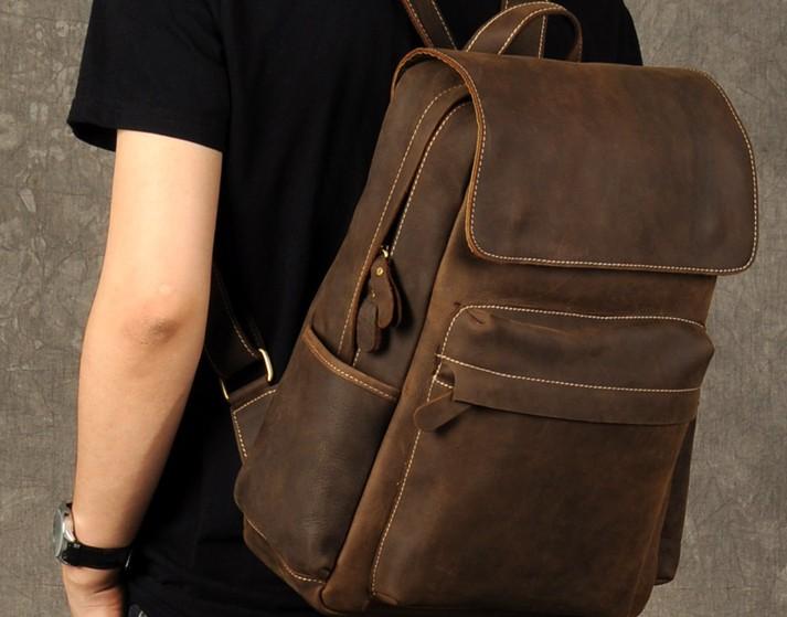 Design: Genuine Leather Mens Cool Backpack Sling Bag Large Brown Travel Bag Hiking Bag for men