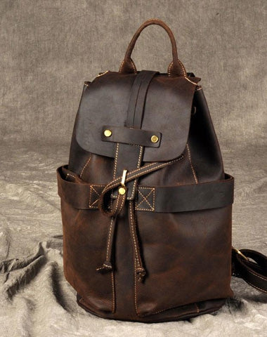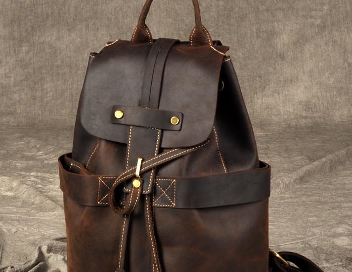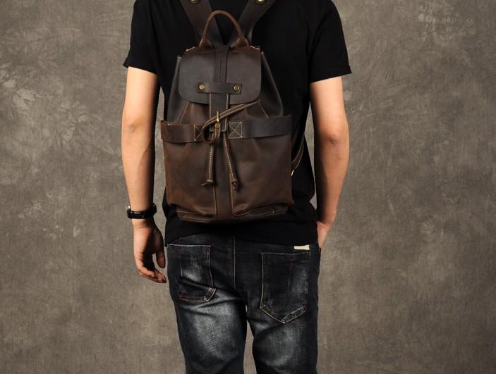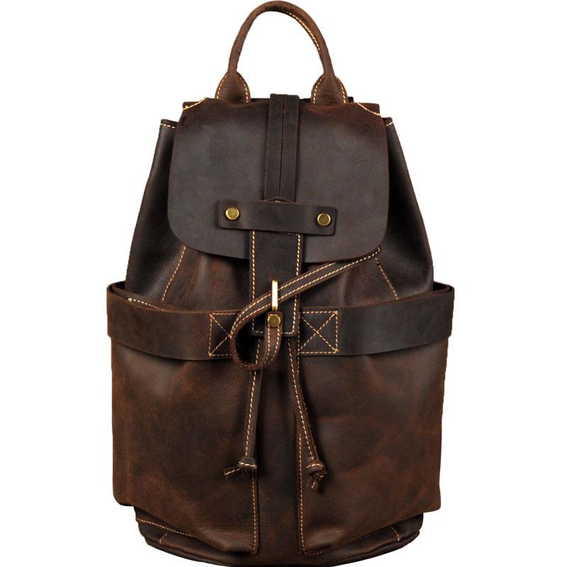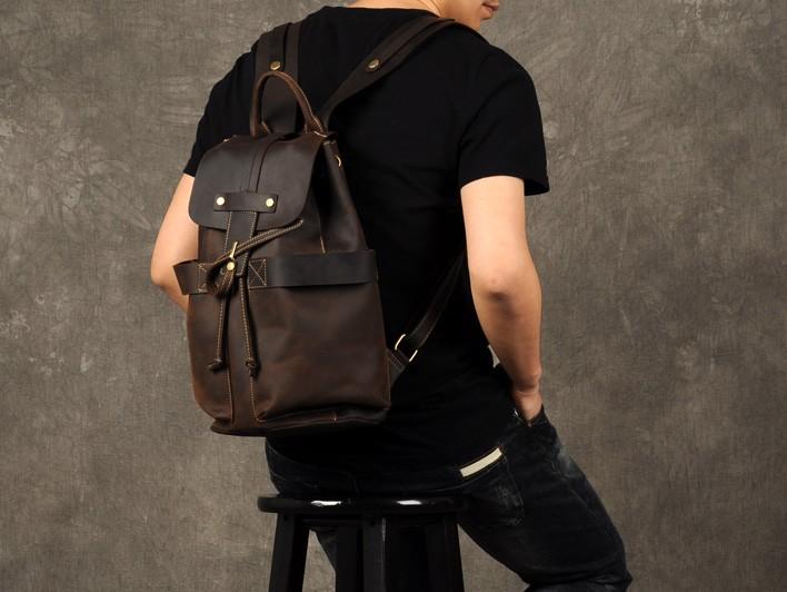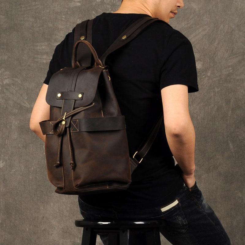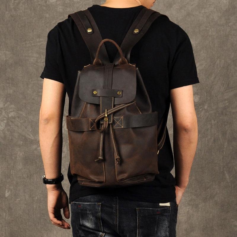 Design: Genuine Leather Mens Cool Backpack Sling Bag Large Coffee Travel Bag Hiking Bag for men