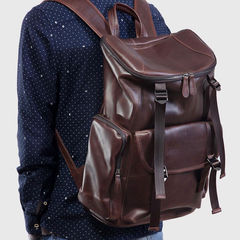 Design: Cool Leather Mens Backpack Travel Backpack School Backpacks for Men