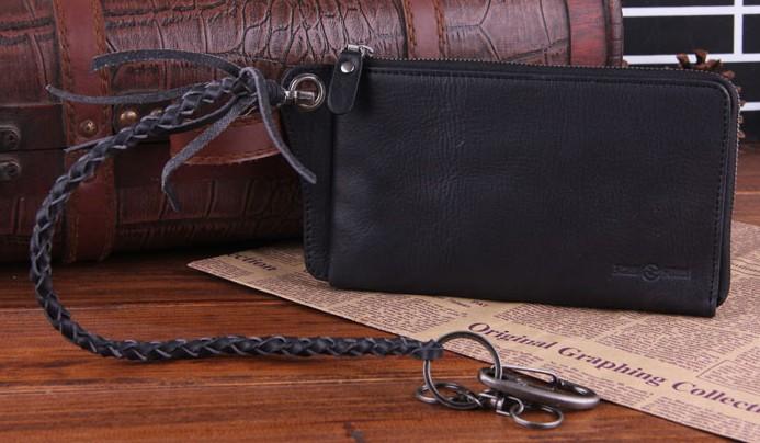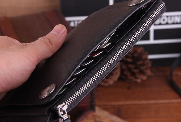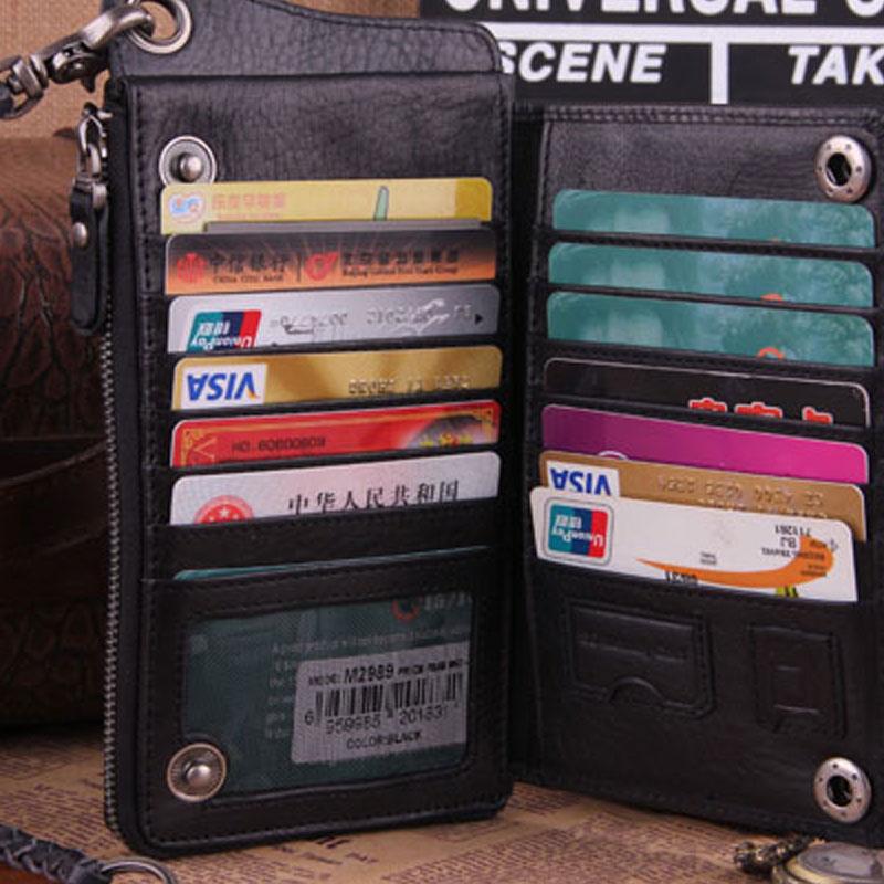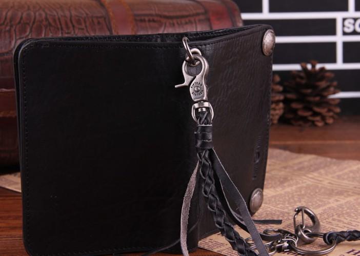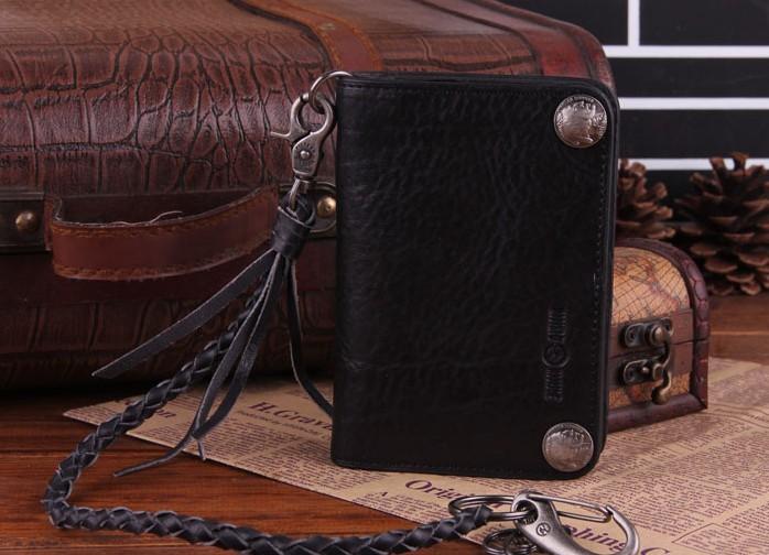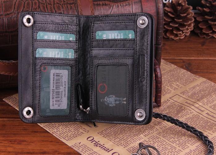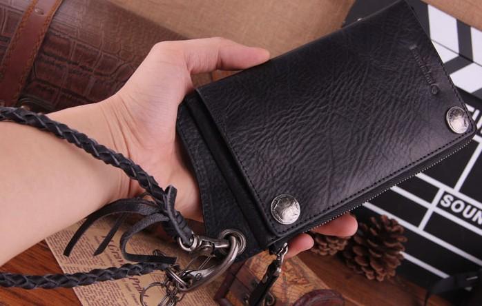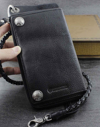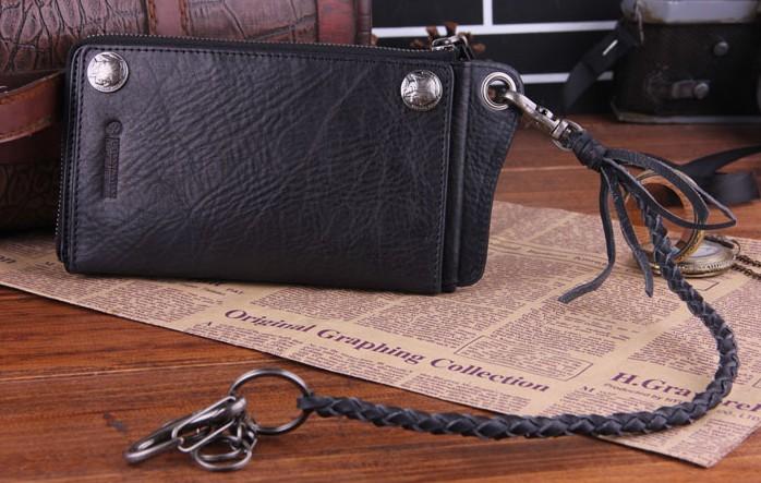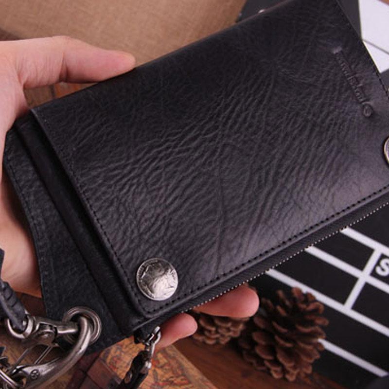 Design: Handmade Genuine Leather Mens Cool Biker Chain Wallet Long Leather Wallet Slim Clutch Wristlet Wallet for Men
