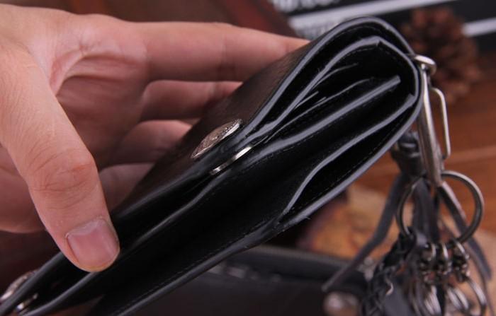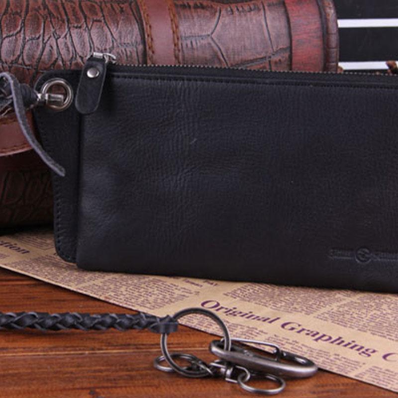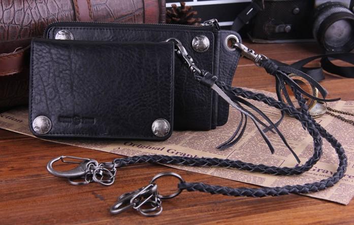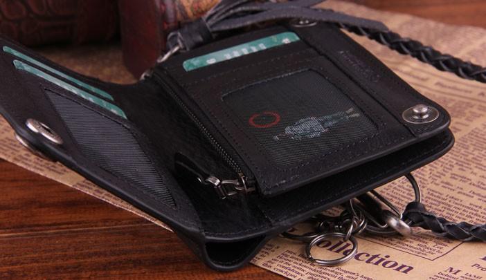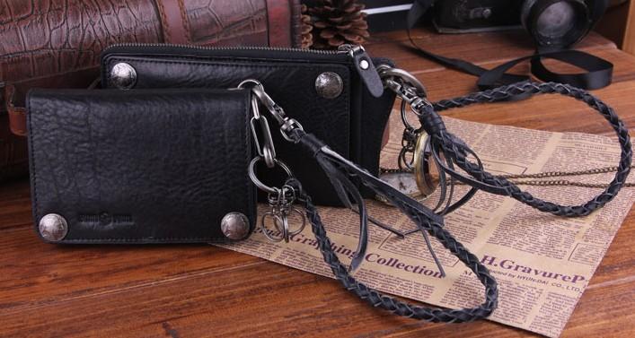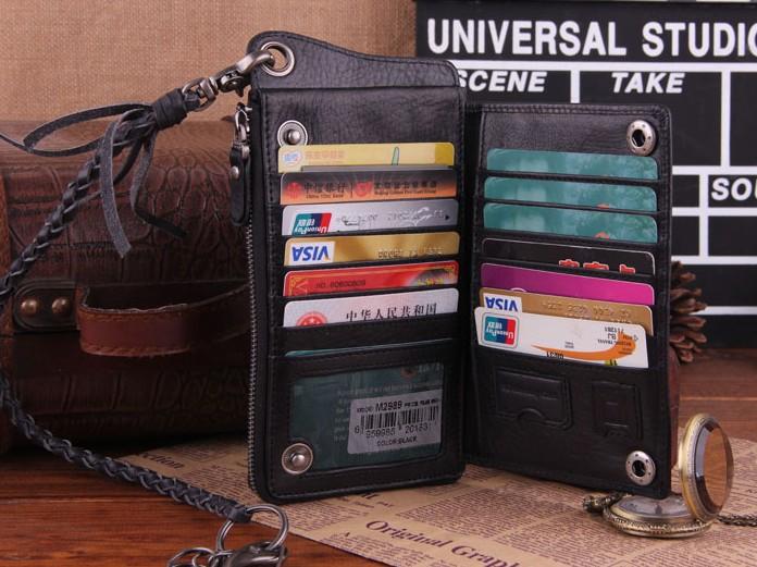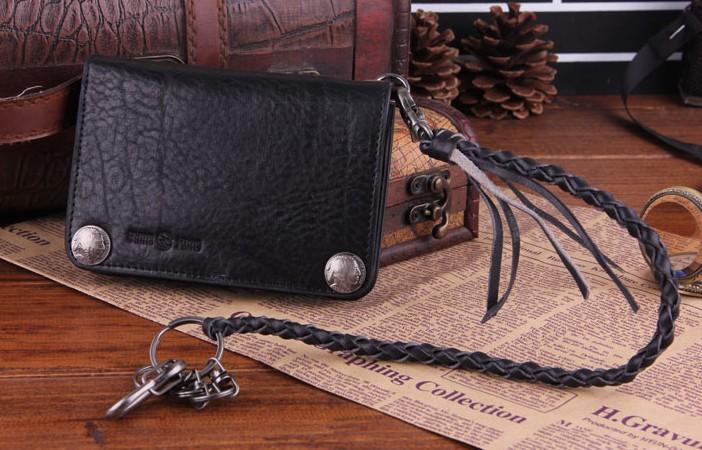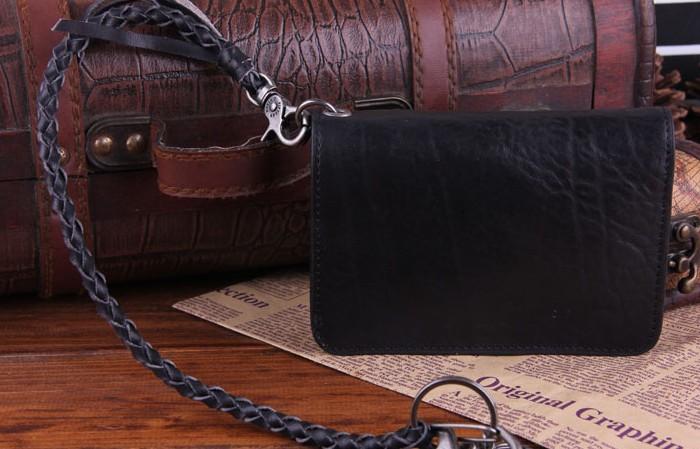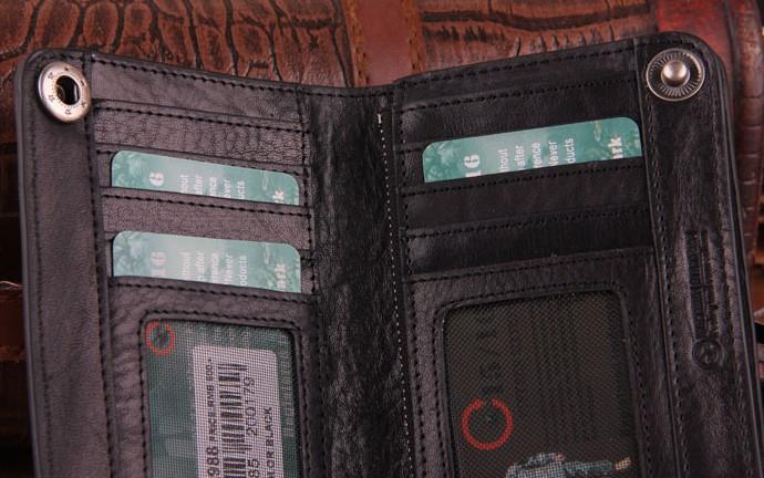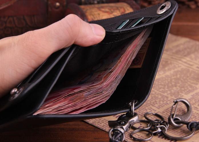 Design: Handmade Genuine Leather Mens Cool Biker Chain Wallet Long Leather Wallet Slim Clutch Wristlet Wallet for Men