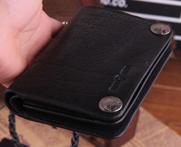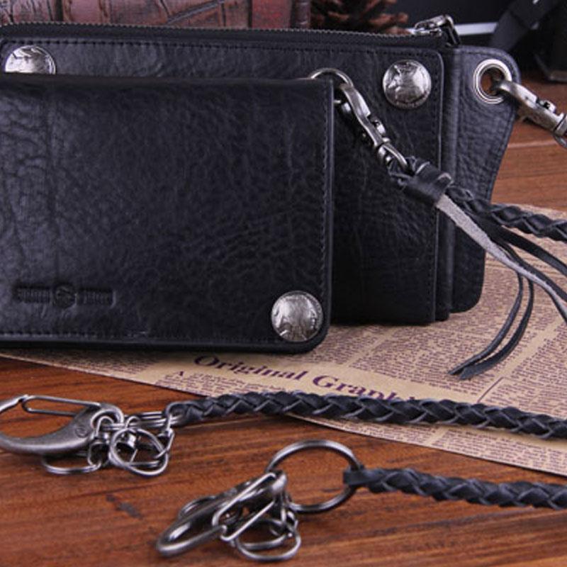 Style: Handmade Genuine Leather Mens Cool Biker Chain Wallet Long Leather Wallet Slim Clutch Wristlet Wallet for Men