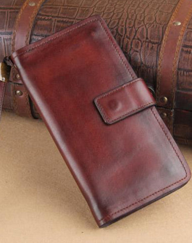 Design: Genuine Leather Mens Cool Biker Chain Wallet Long Leather Wallet Slim Clutch Wristlet Wallet for Men