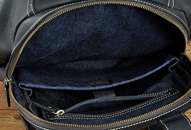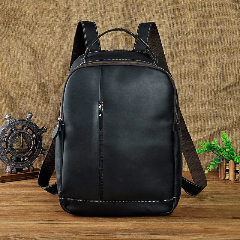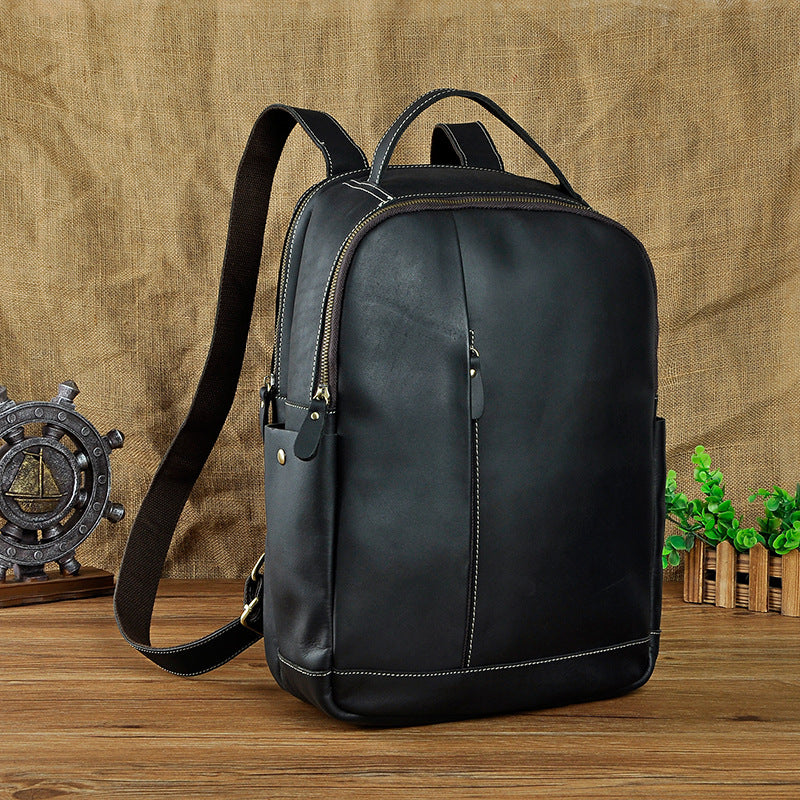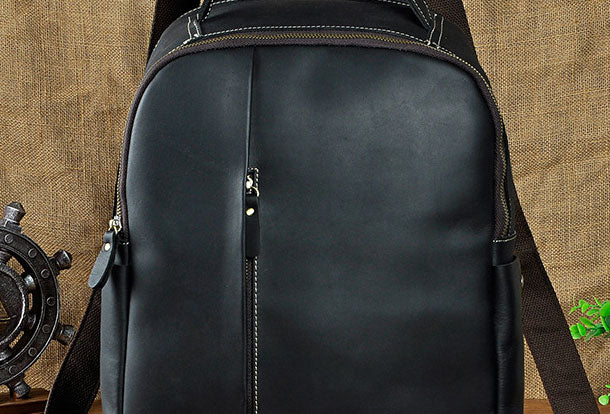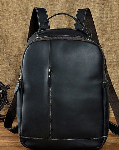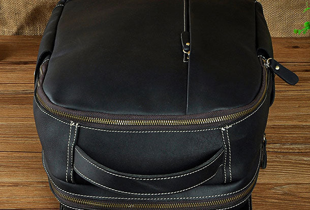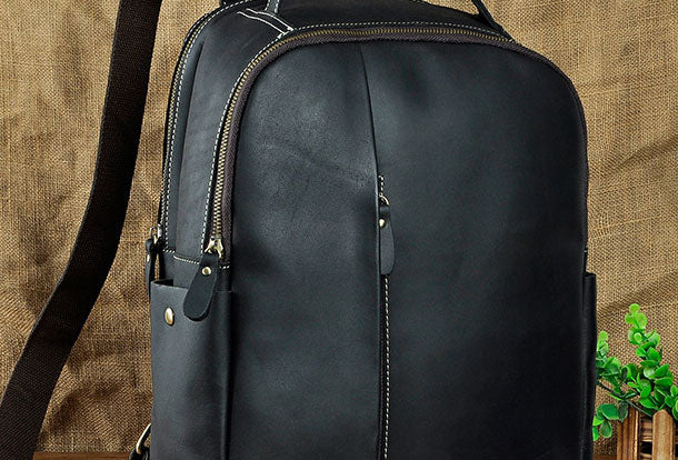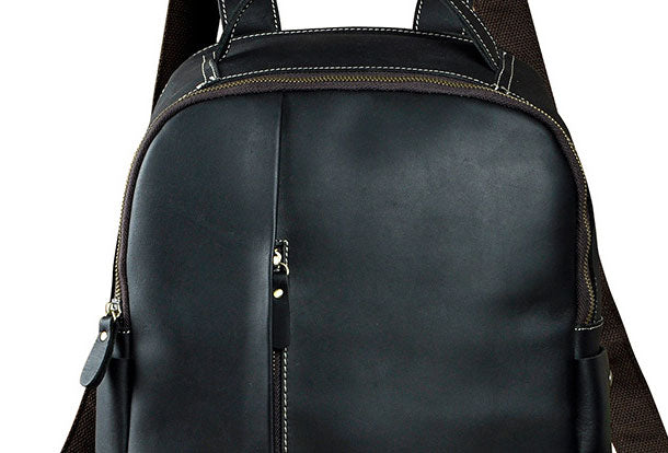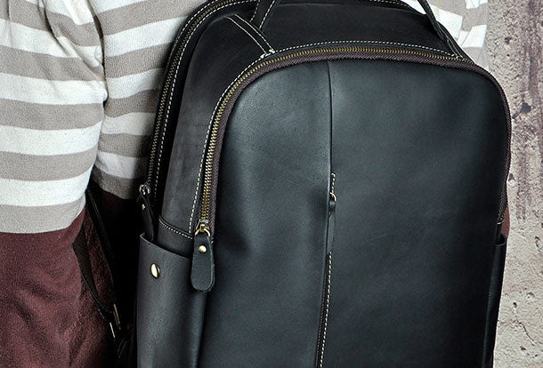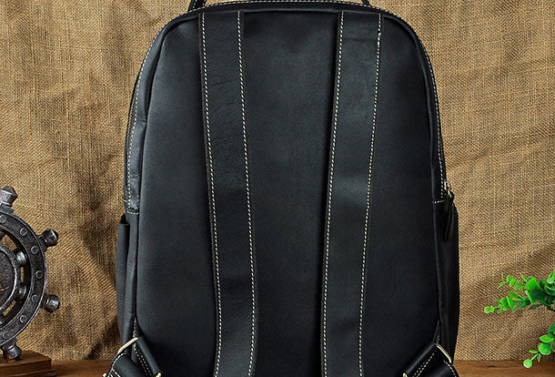 Design: Genuine Leather Mens Cool Black Backpack for School Travel Bag Hiking Bag For MenOverview: