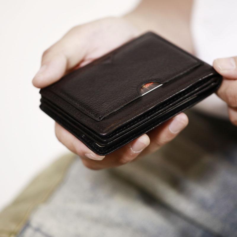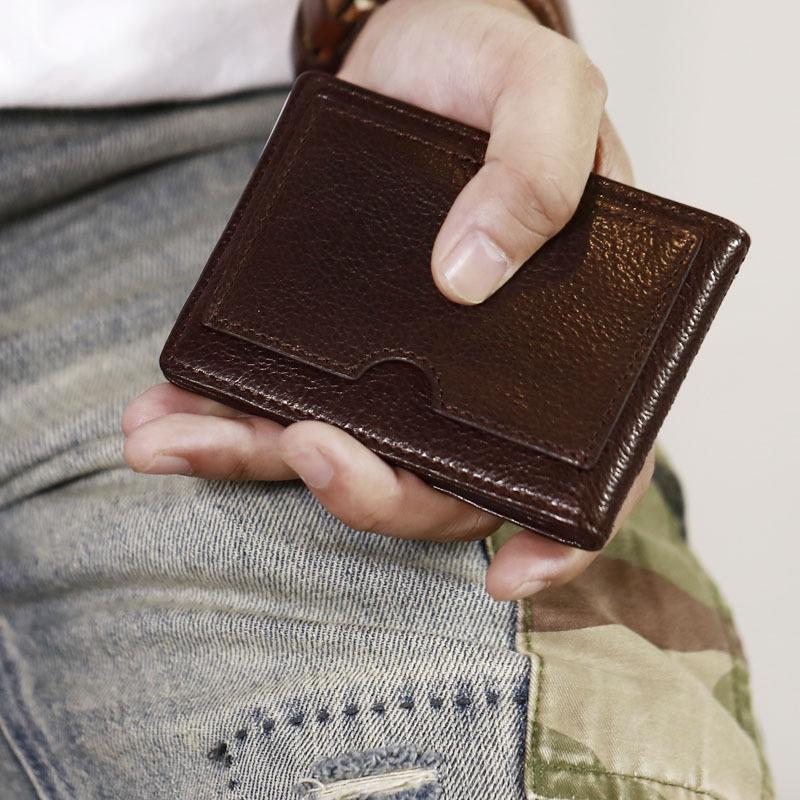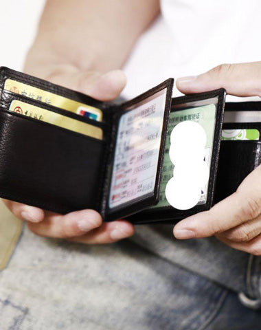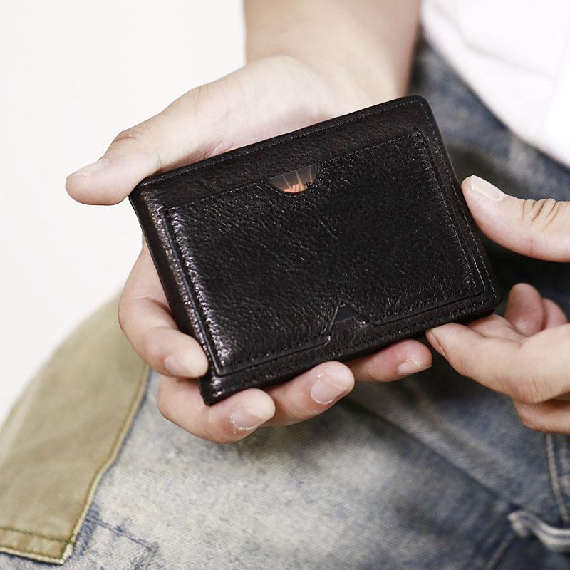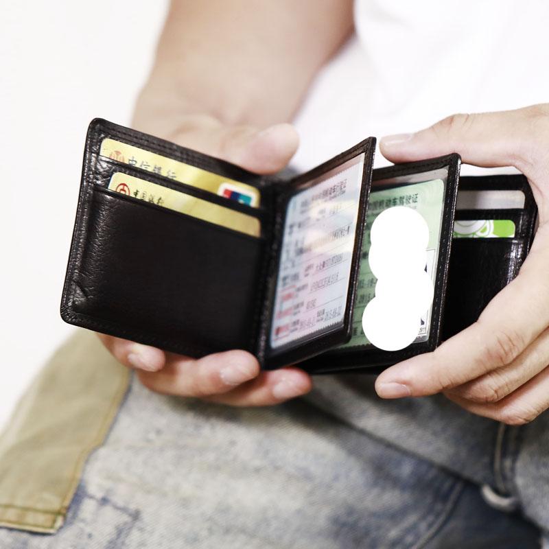Style: Genuine Leather Mens Cool Black billfold Leather Wallet Men Small Wallets Card Wallet License Holder for Men