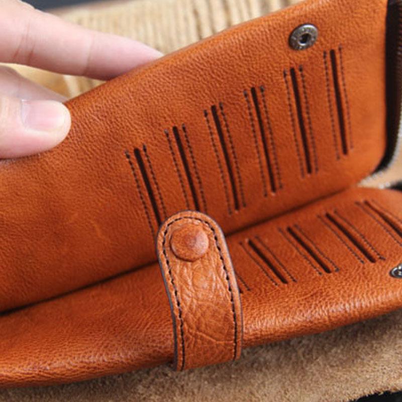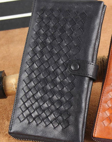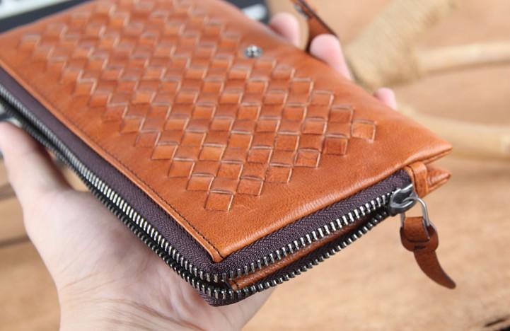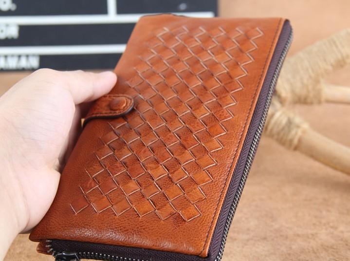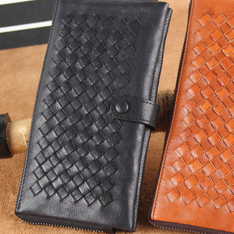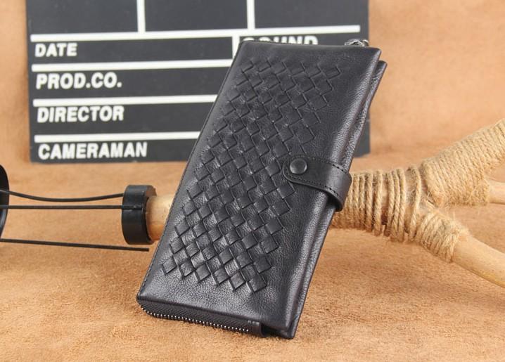 Design: Genuine Leather Mens Cool Braided Wallet Long Leather Wallet Clutch Wristlet Wallet for Men