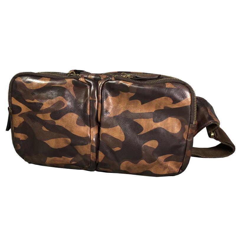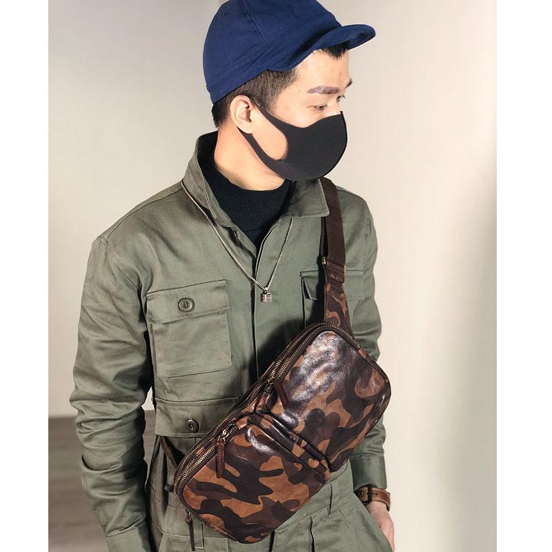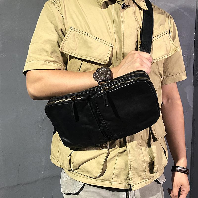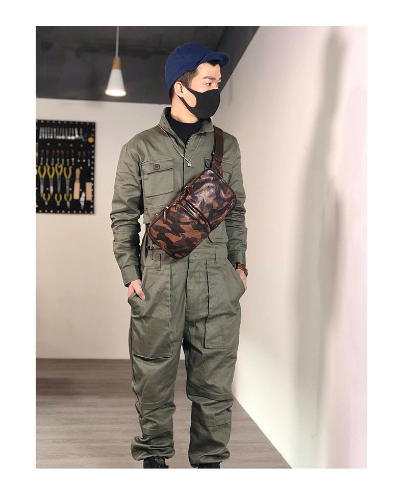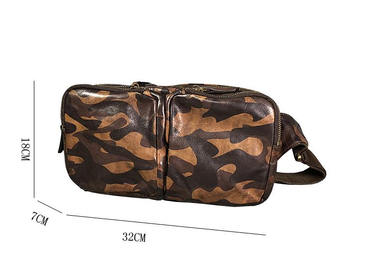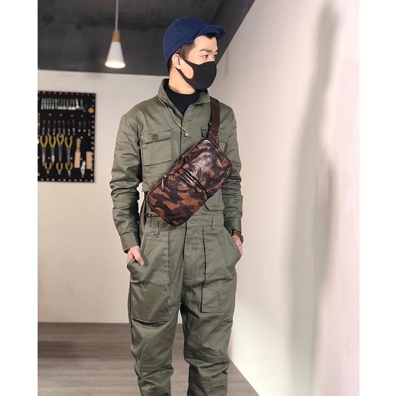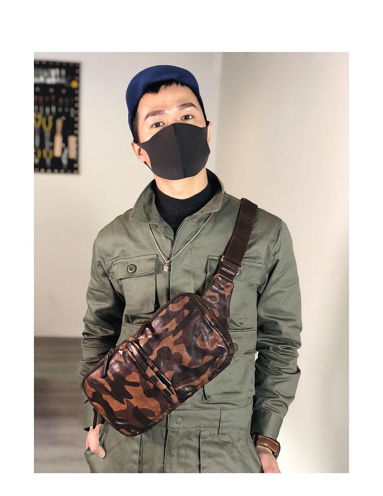 Design: Genuine Leather Mens Cool Camouflage Chest Bag Sling Bag Crossbody Bag Black One Shoulder Backpack for men