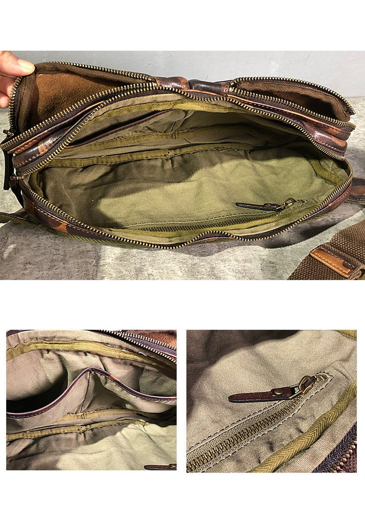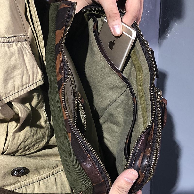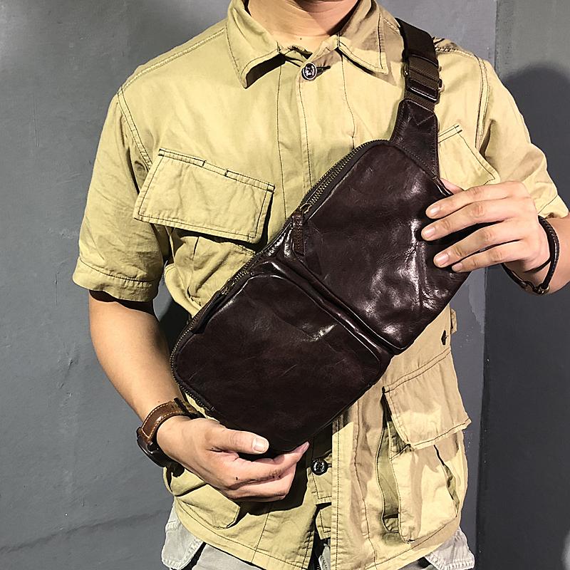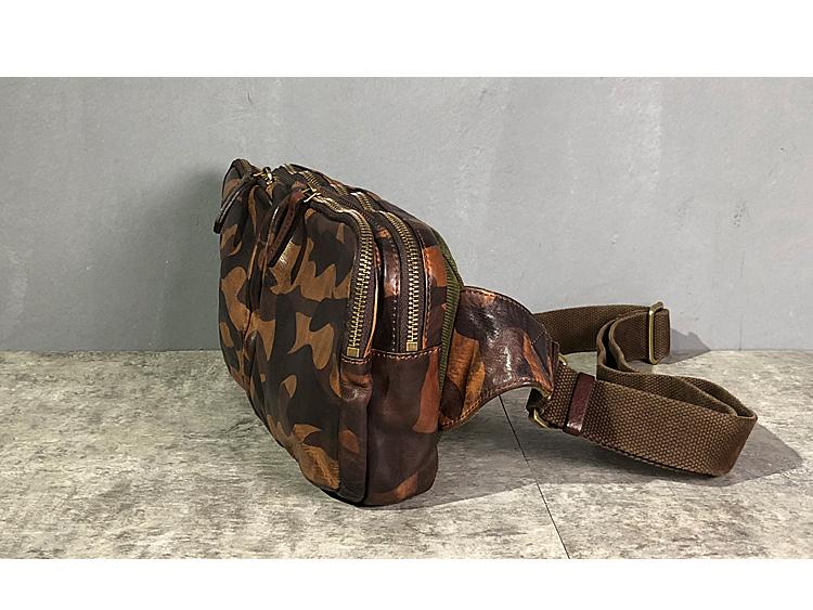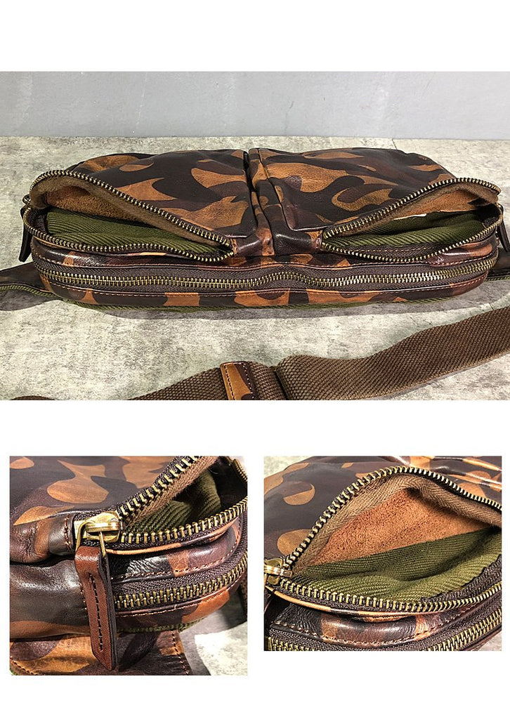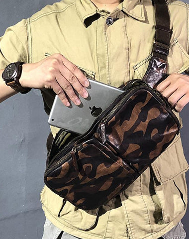 Style: Genuine Leather Mens Cool Camouflage Chest Bag Sling Bag Crossbody Bag Black One Shoulder Backpack for men