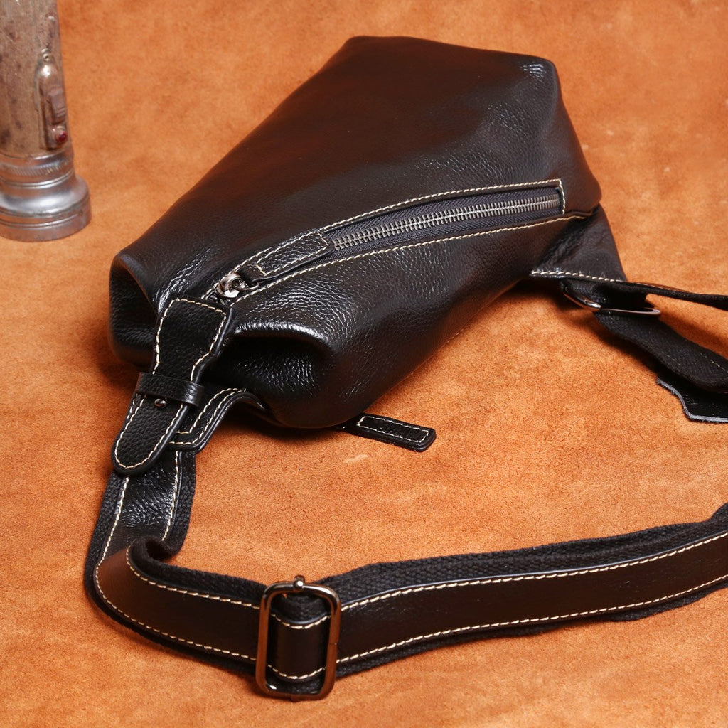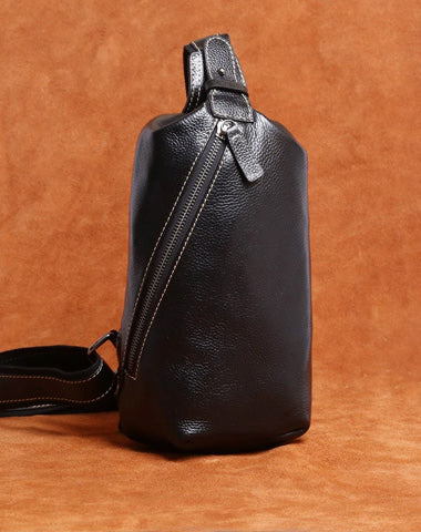 Design: Handmade Leather Mens Cool Chest Bag Sling Bag Crossbody Bag Travel Bag Hiking Bag for men