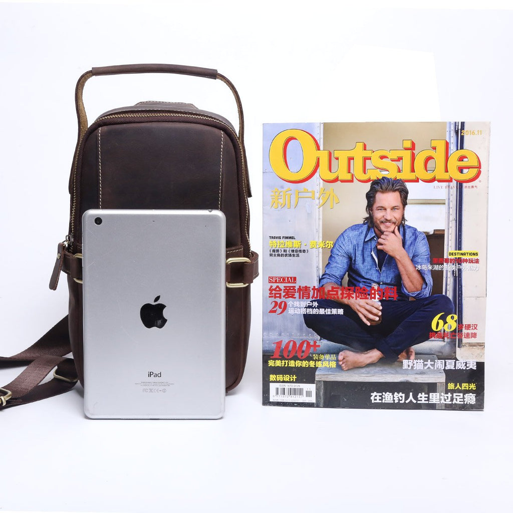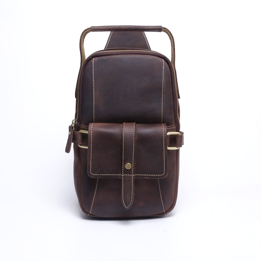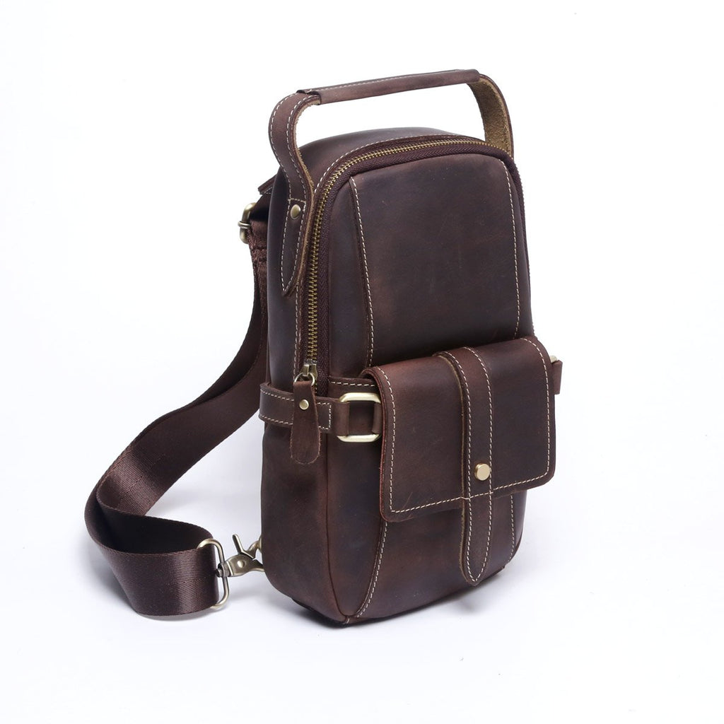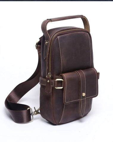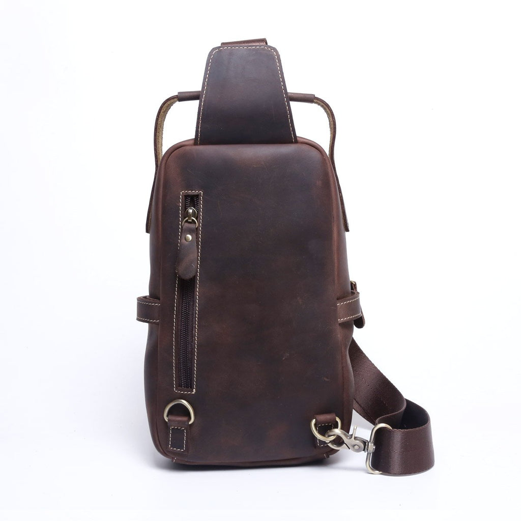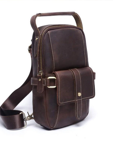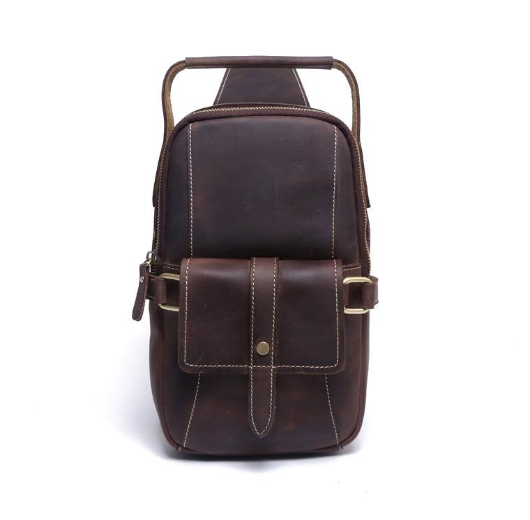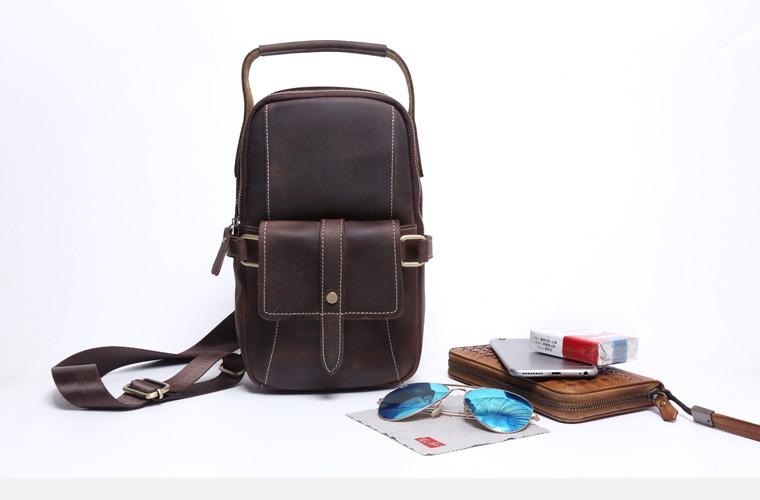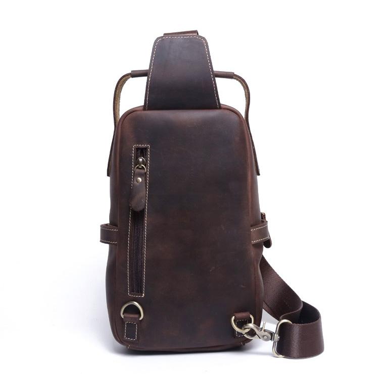 Style: Handmade Leather Mens Cool Chest Bag Sling Bag Crossbody Bag Travel Bag Hiking Bag for men