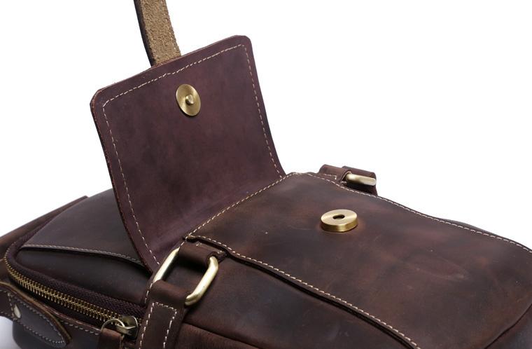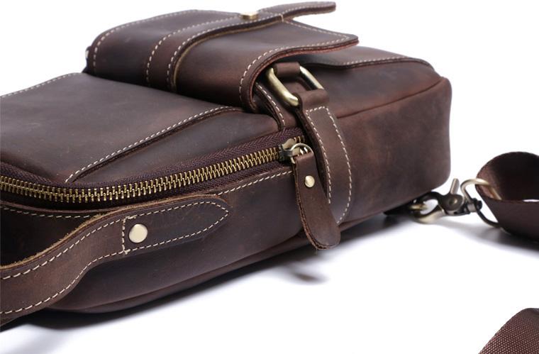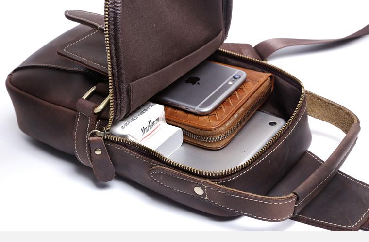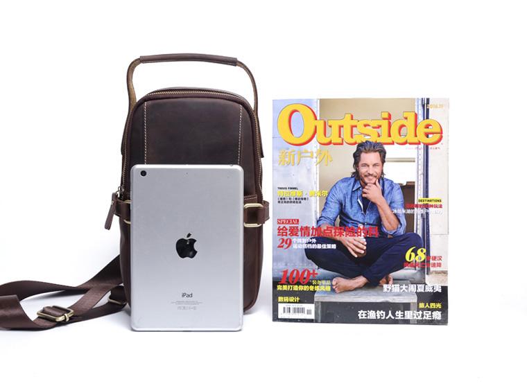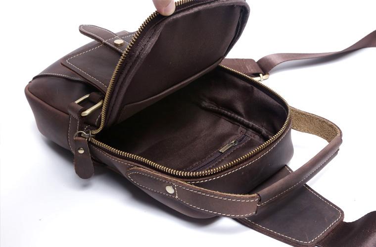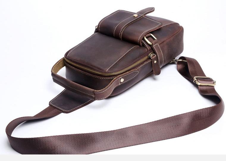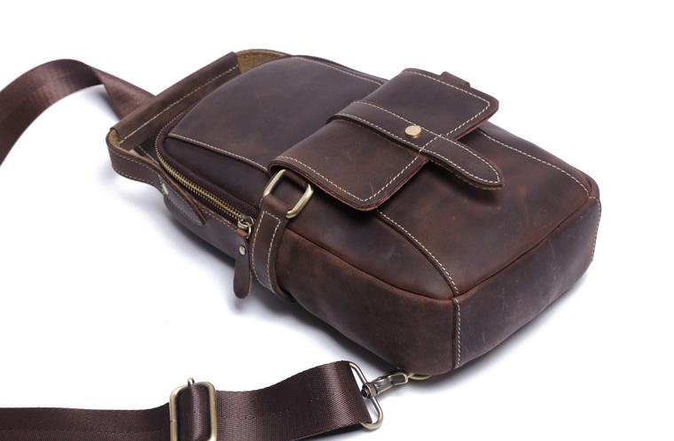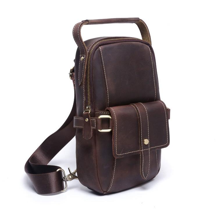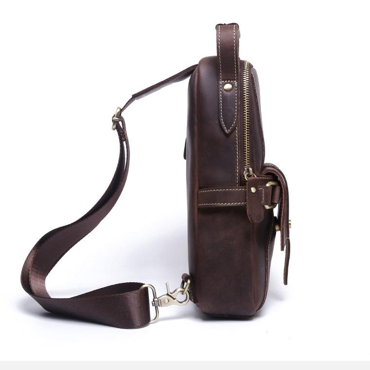 Design: Handmade Leather Mens Cool Chest Bag Sling Bag Crossbody Bag Travel Bag Hiking Bag for men