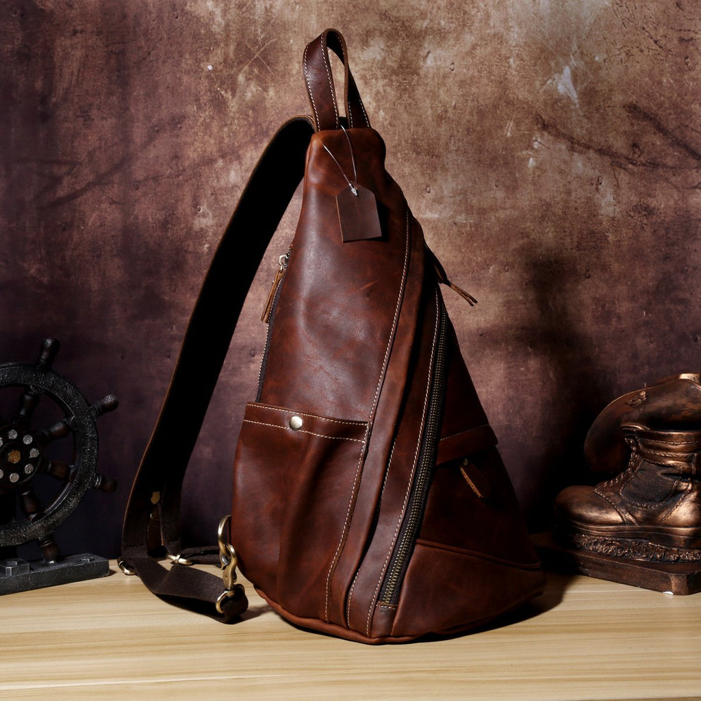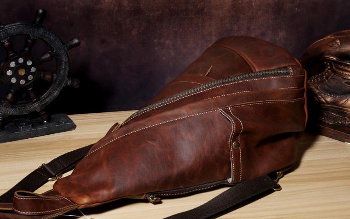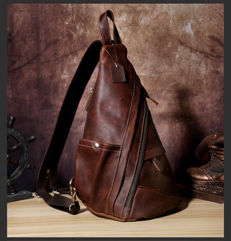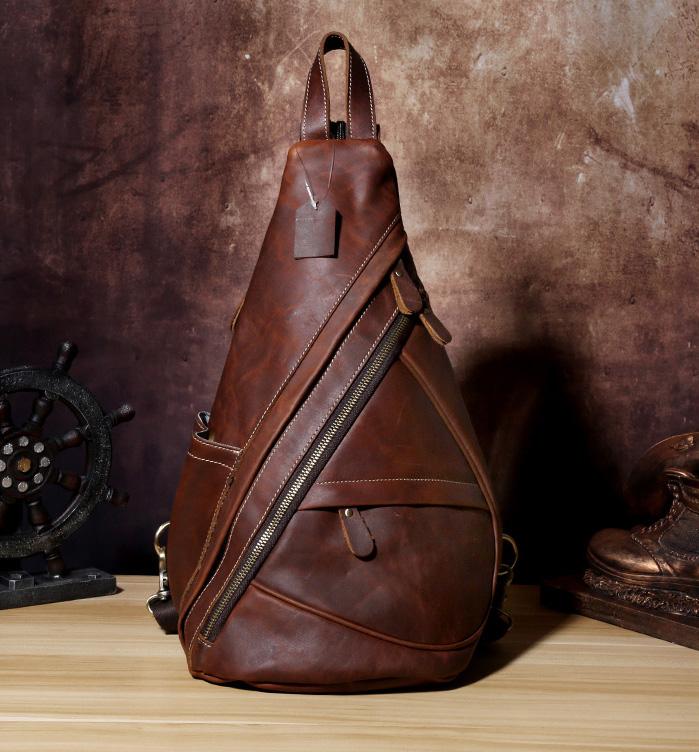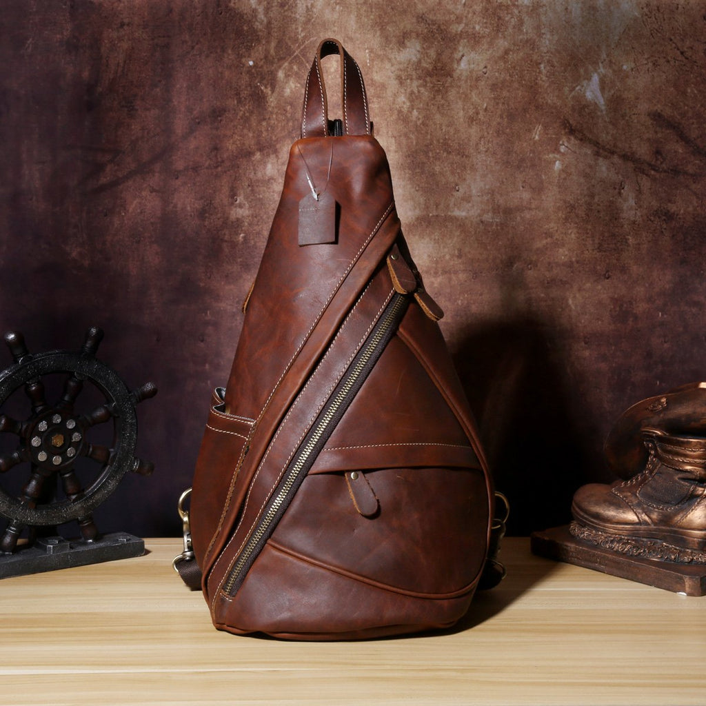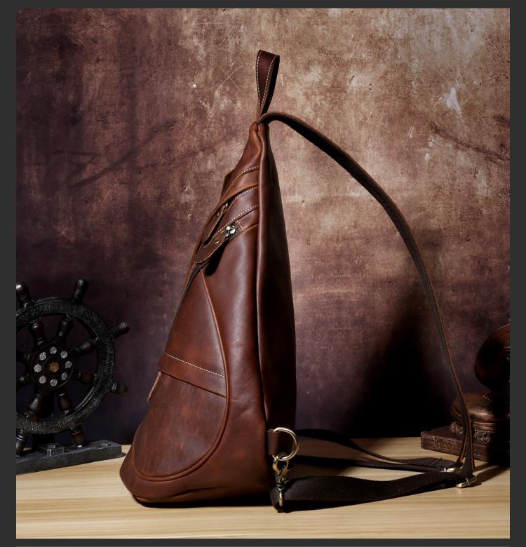 Design: Genuine Leather Mens Cool Chest Bag Sling Bag Crossbody Bag Travel Bag Hiking Bag for men