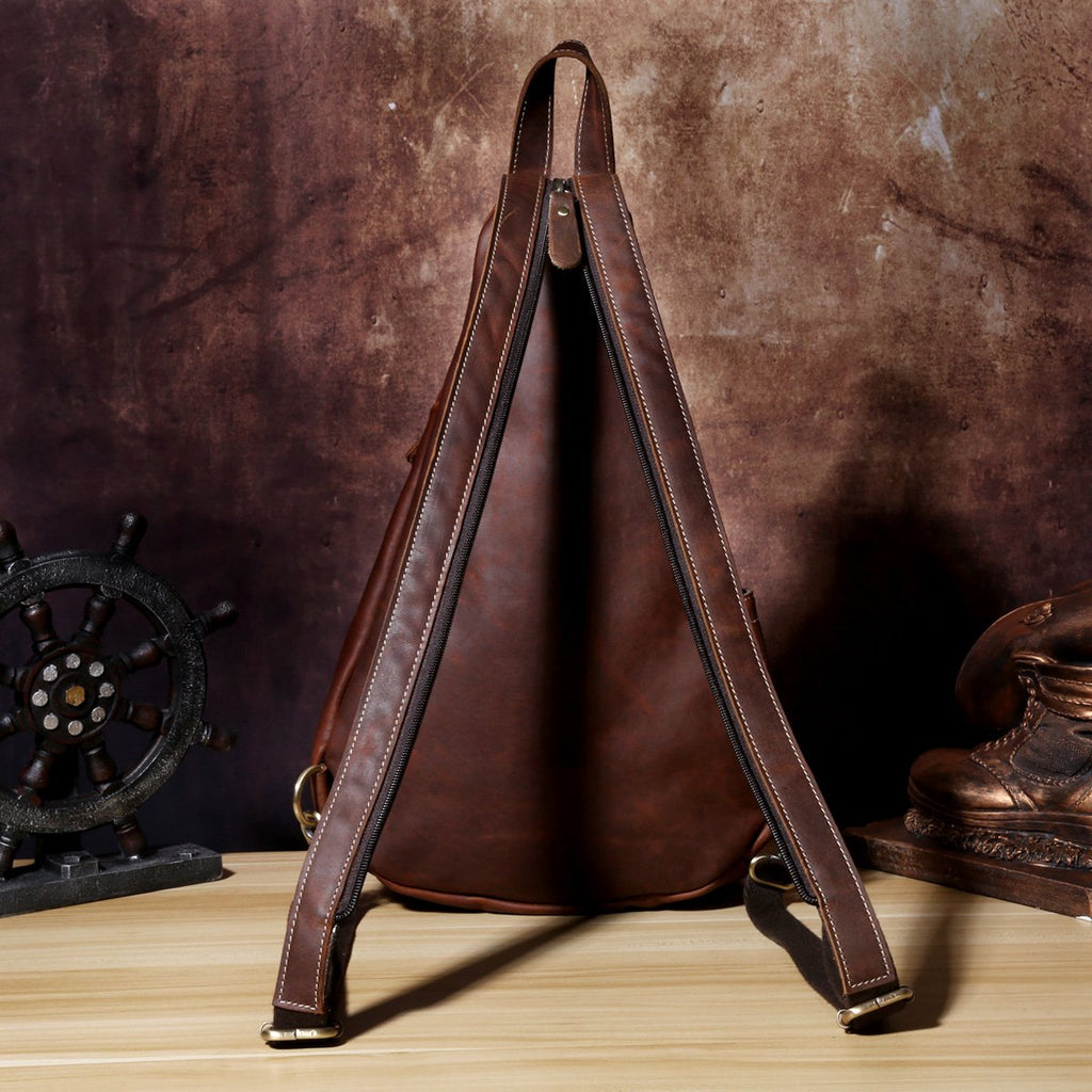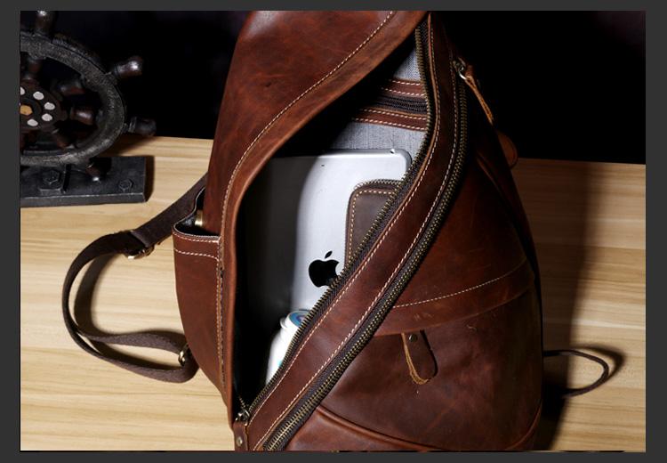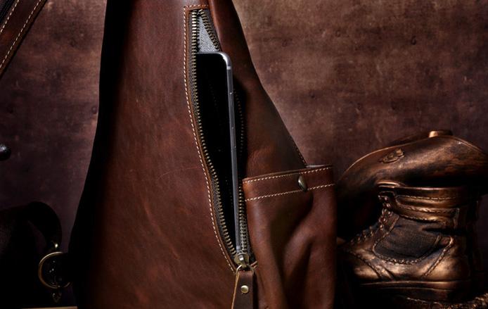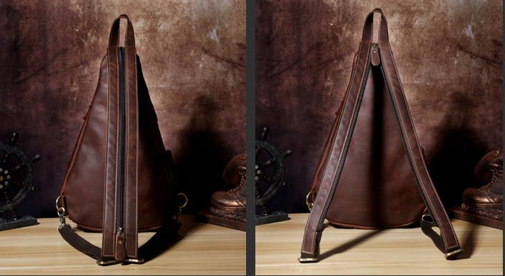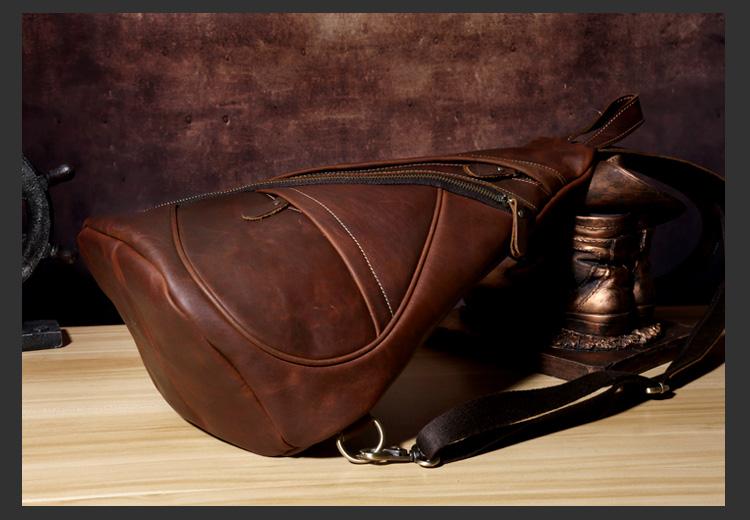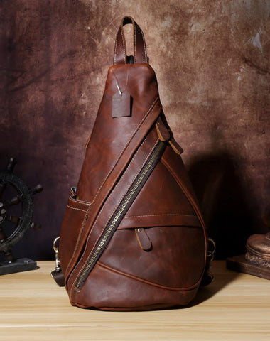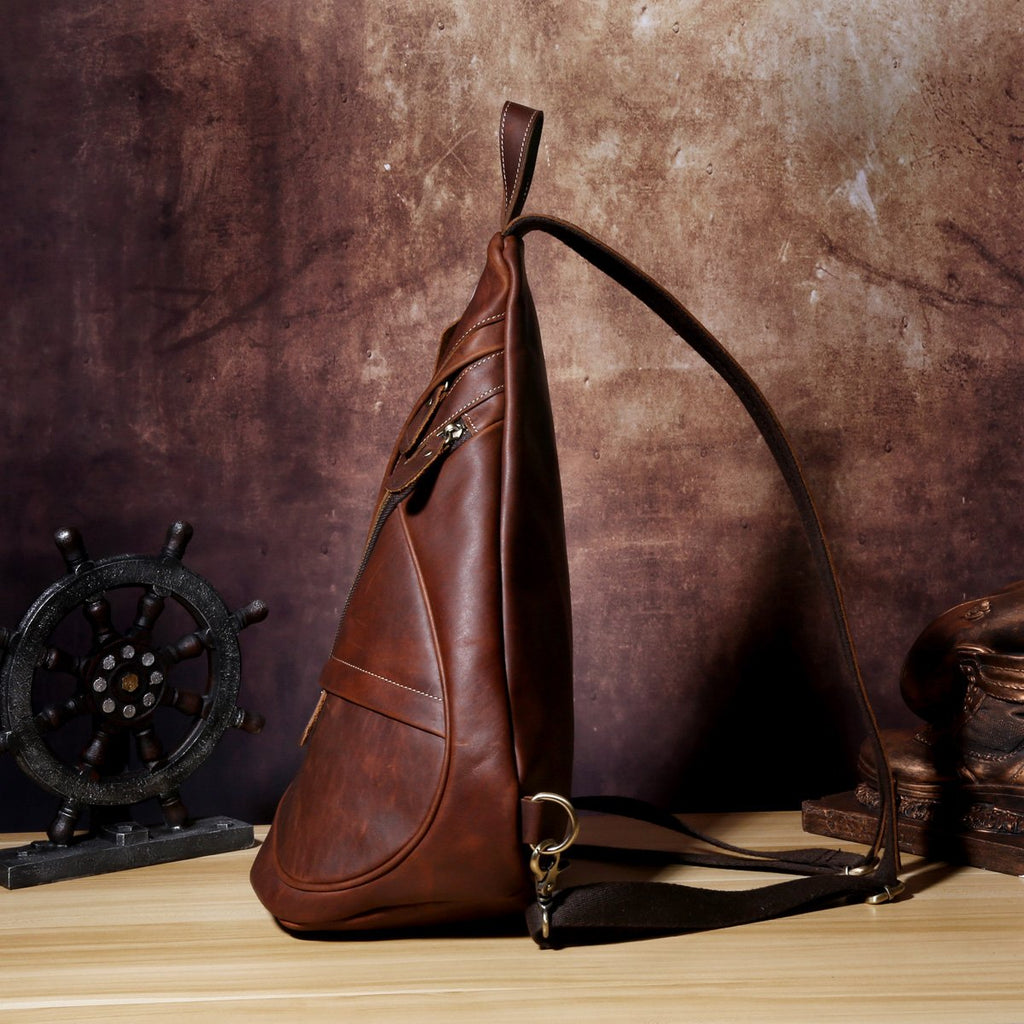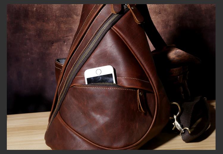 Design: Genuine Leather Mens Cool Chest Bag Sling Bag Crossbody Bag Travel Bag Hiking Bag for men