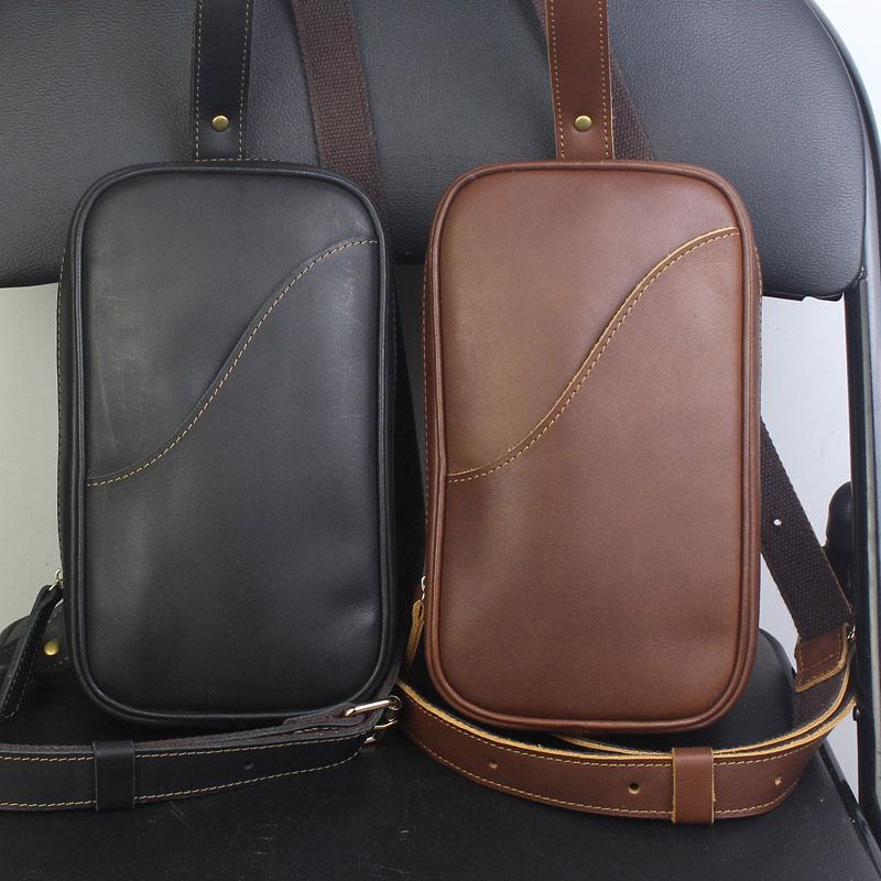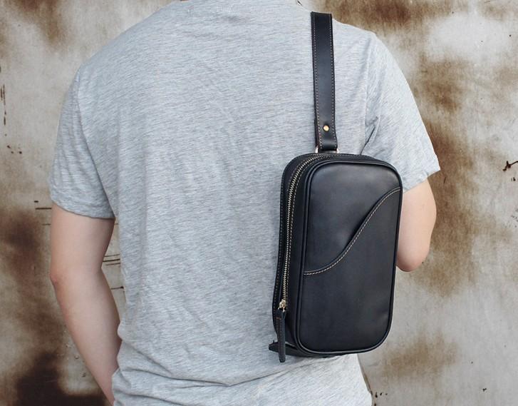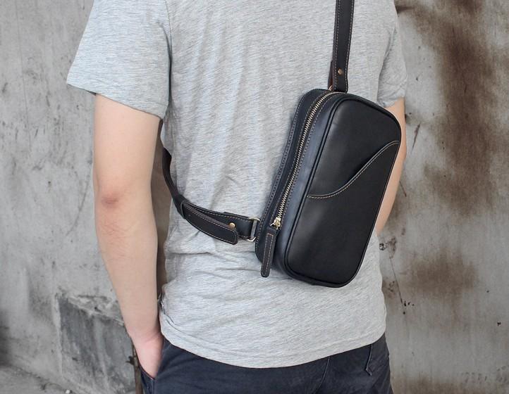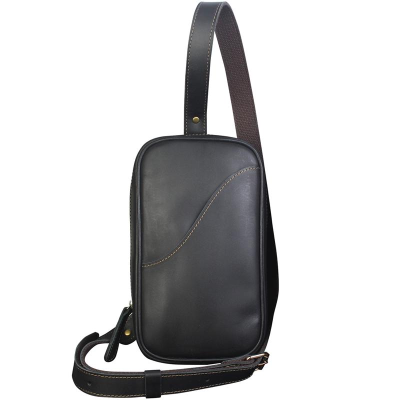 Design: Genuine Leather Mens Cool Chest Bag Sling Bag Crossbody Bag Travel Bag Hiking Bag for men