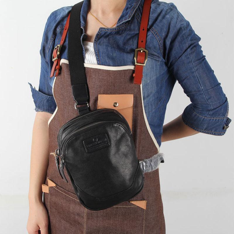 Genuine Small Black Leather Mens Cool Chest Bag Sling Bag Crossbody Pack for men