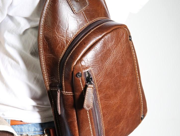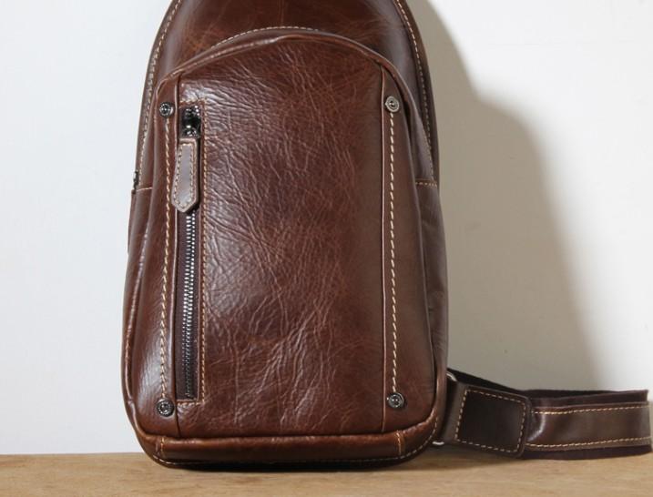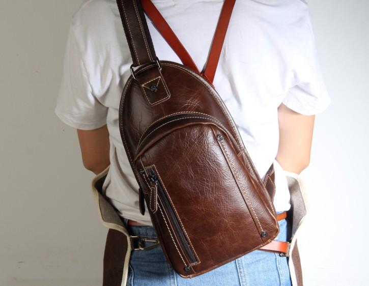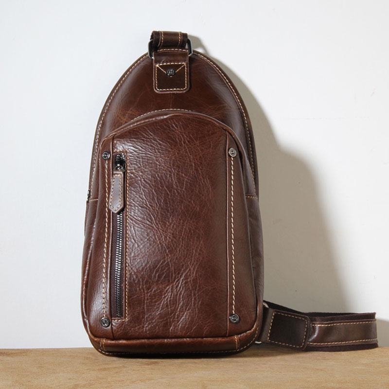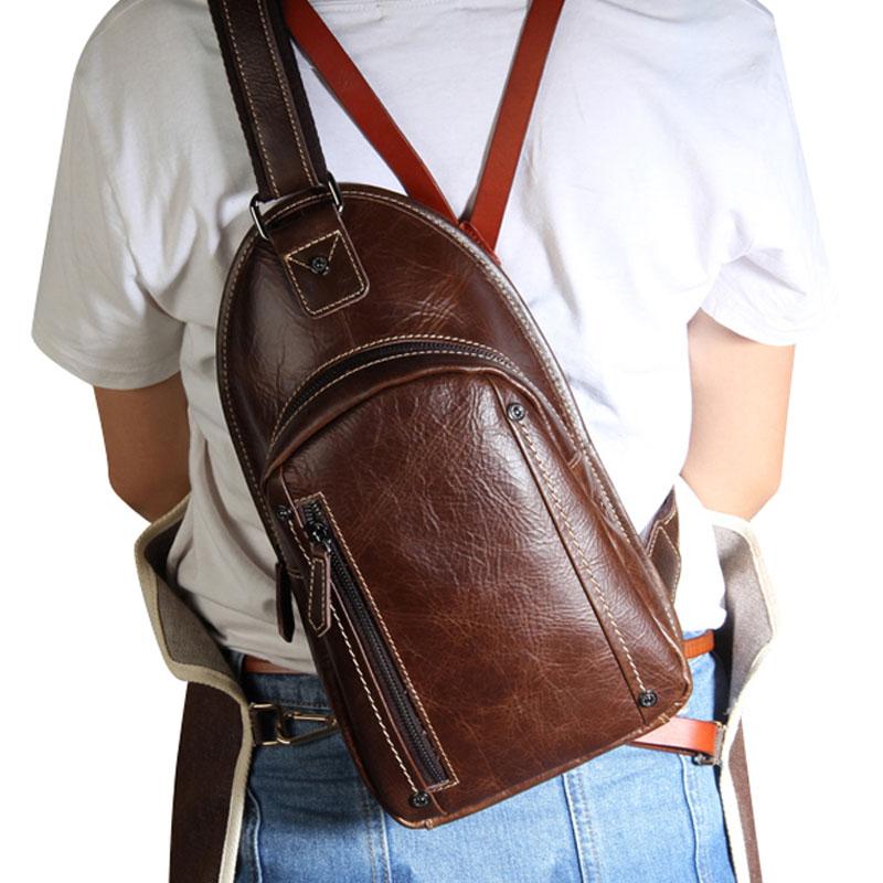 Style: Genuine Leather Mens Cool Chest Bag Sling Bag Crossbody Bag Travel Bag Hiking Bag for men