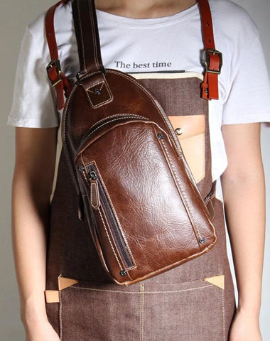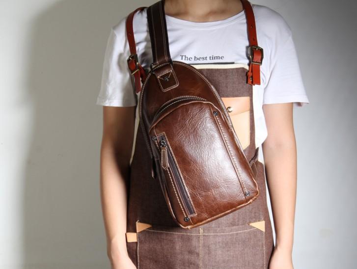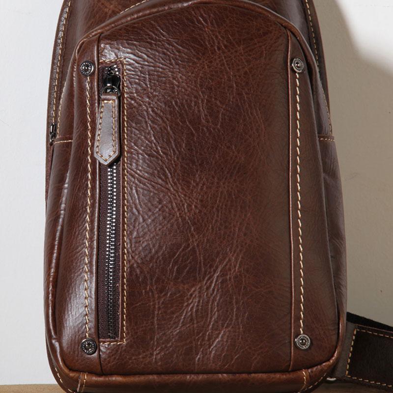 Design: Genuine Leather Mens Cool Chest Bag Sling Bag Crossbody Bag Travel Bag Hiking Bag for men