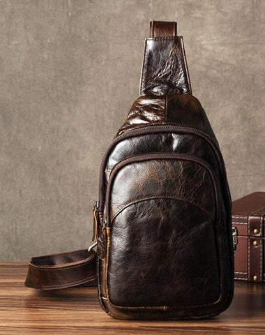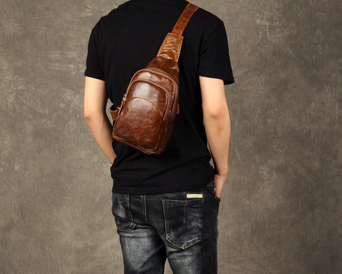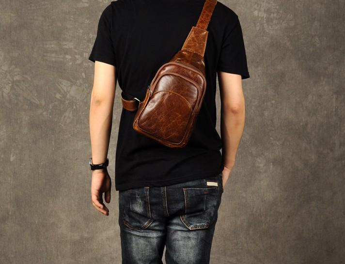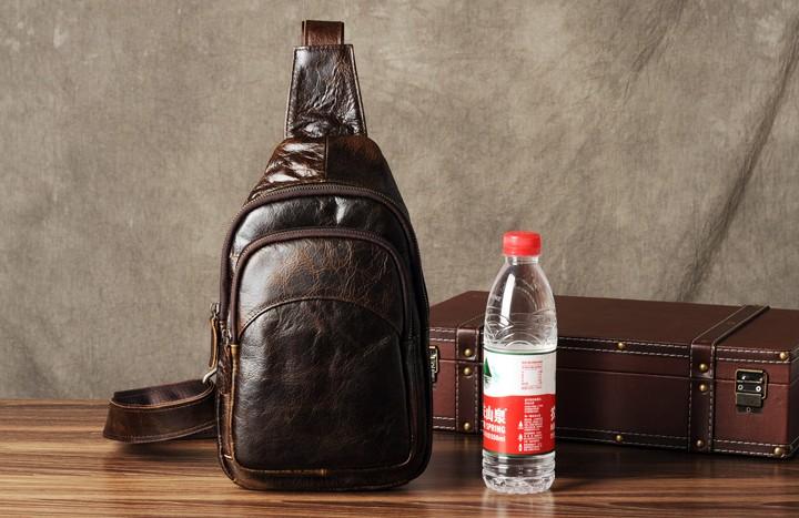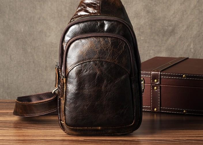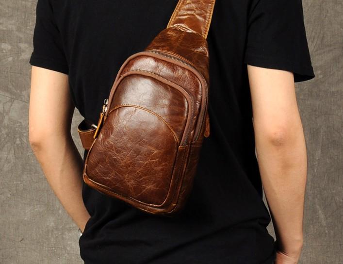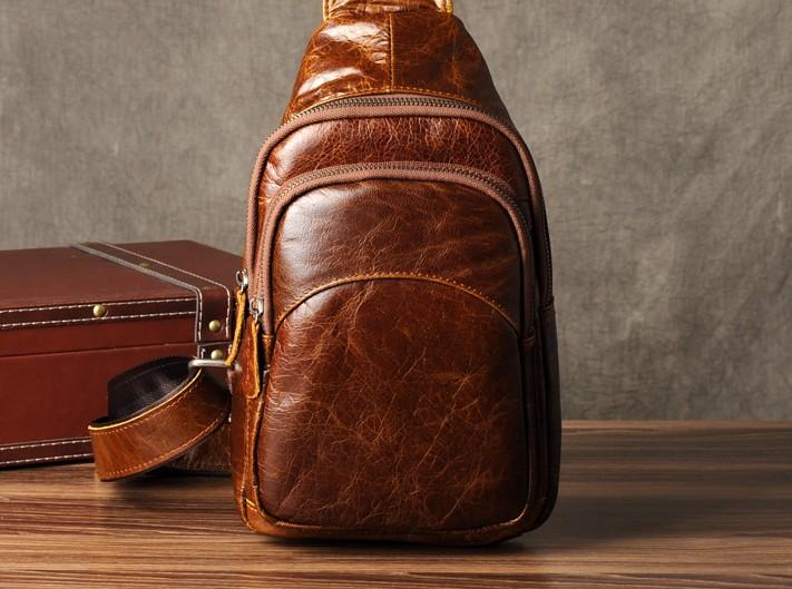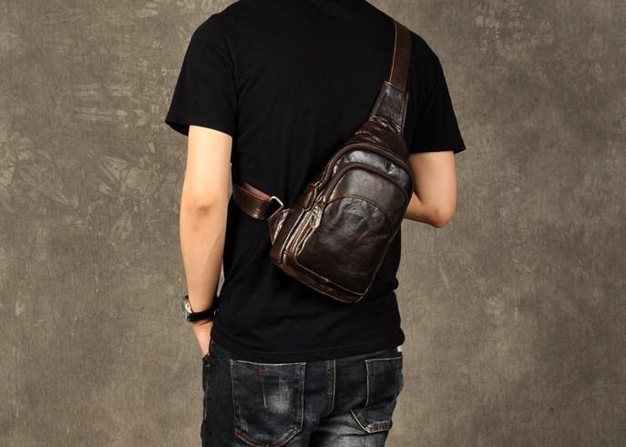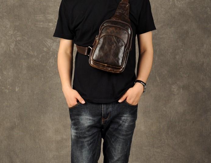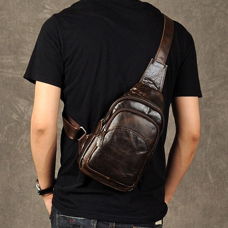Style: Genuine Leather Mens Cool Chest Bag Sling Bag Crossbody Bag Travel Bag Hiking Bag for men