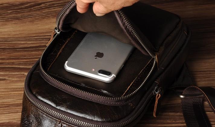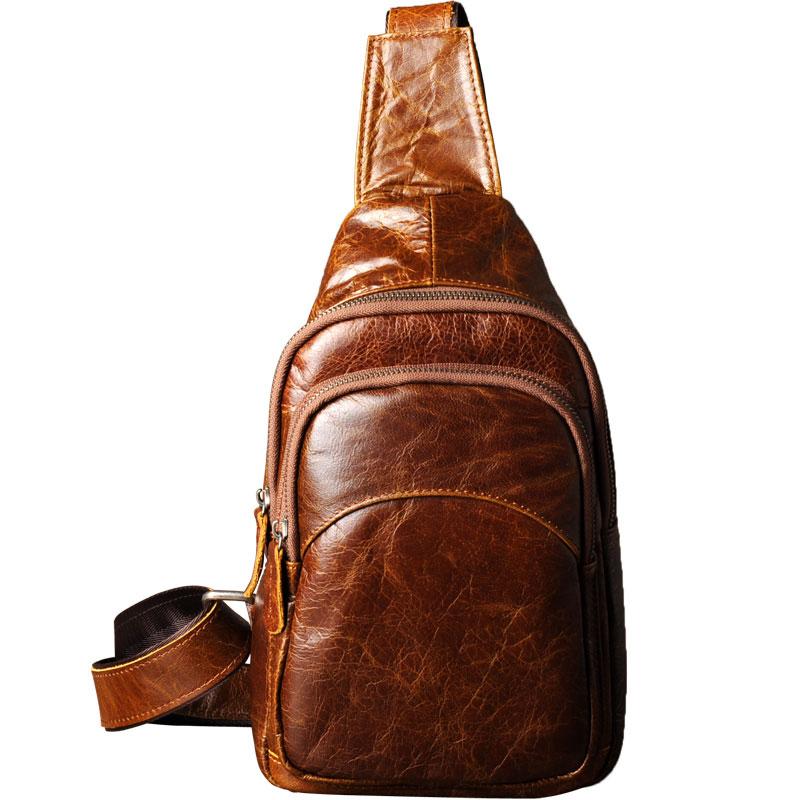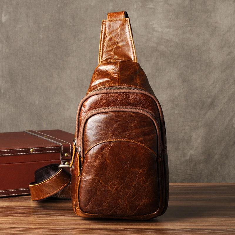 Design: Genuine Leather Mens Cool Chest Bag Sling Bag Crossbody Bag Travel Bag Hiking Bag for men