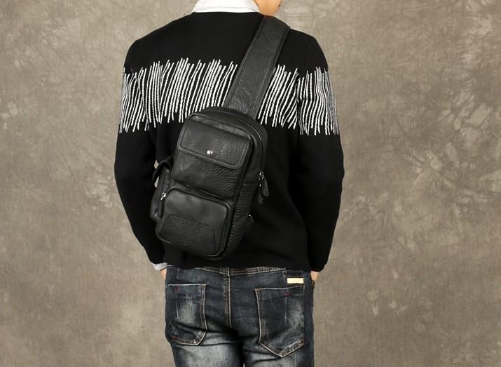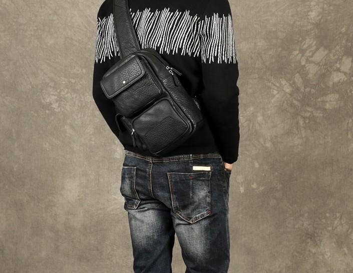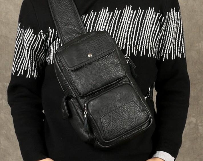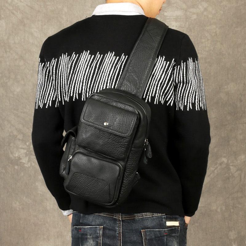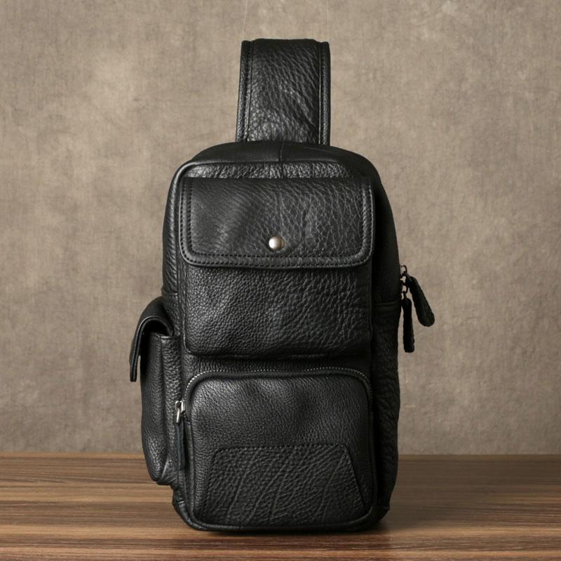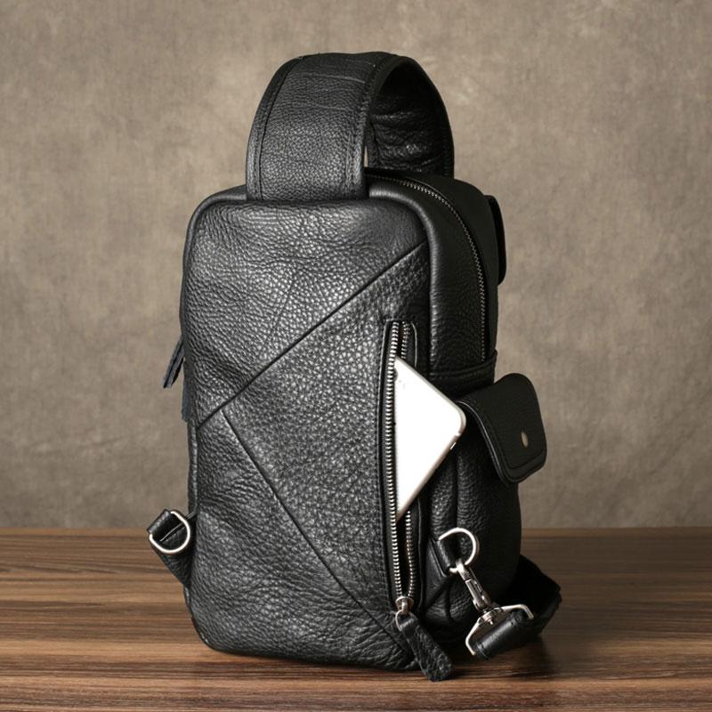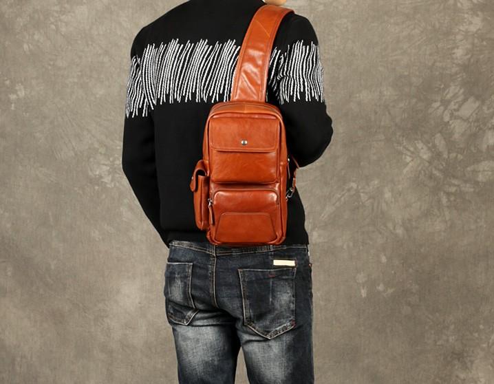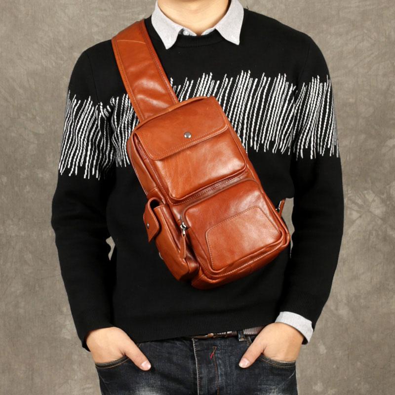 Design: Genuine Leather Mens Cool Chest Bag Sling Bag Crossbody Bag Travel Bag Hiking Bag for men
